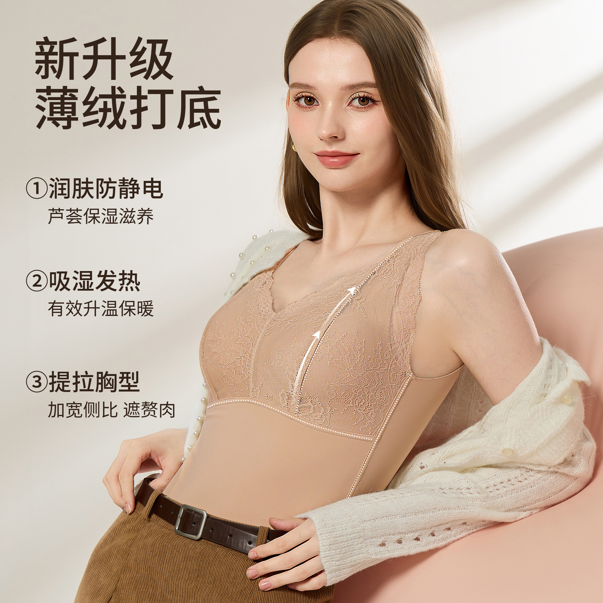 内茵羊毛保暖带胸垫背心女蕾丝边打底衫 衣橱直播间 所有女生