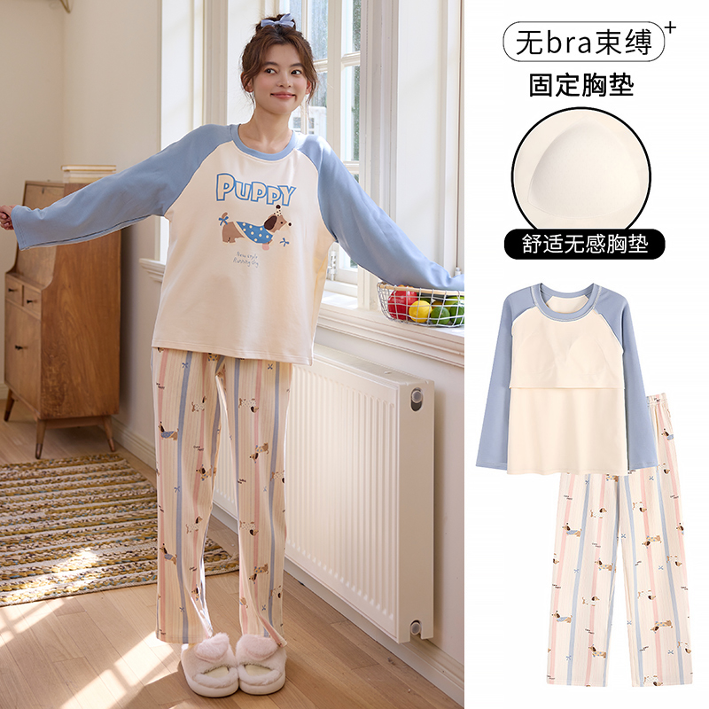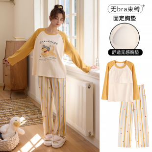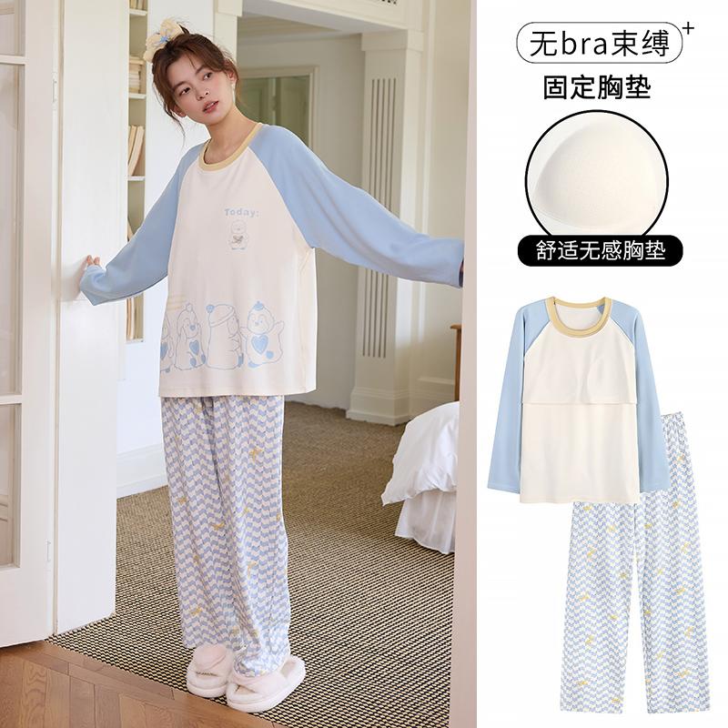 女款 家居服秋季 开衫 宽松大码 芬腾婴儿棉睡衣女春秋款 套装 棉质长袖