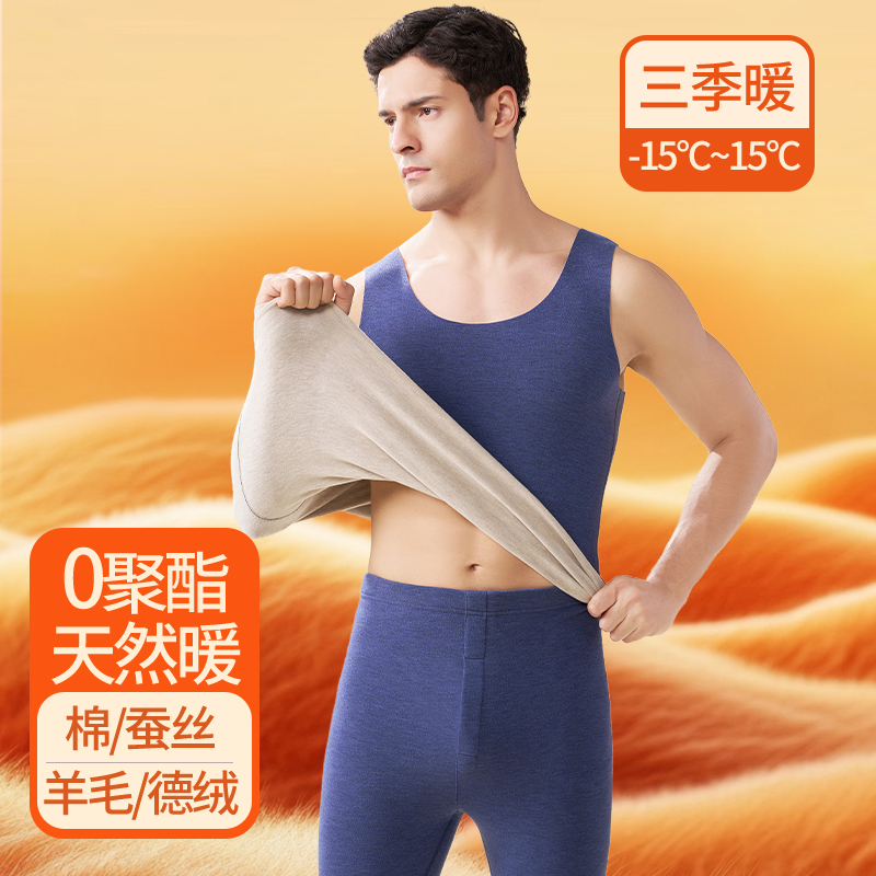 芬腾羊毛蚕丝保暖内衣男绒德无痕发热内穿加绒加厚打底背心冬上衣