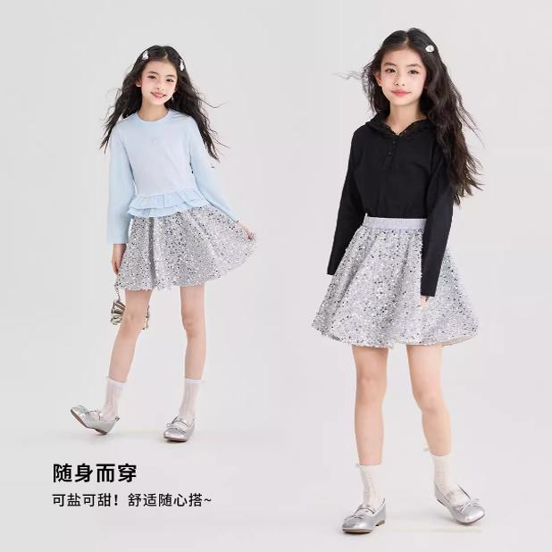 秋季 森马半身裙女格纹伞裙复古风2025新款 A字长裙显瘦 商场同款