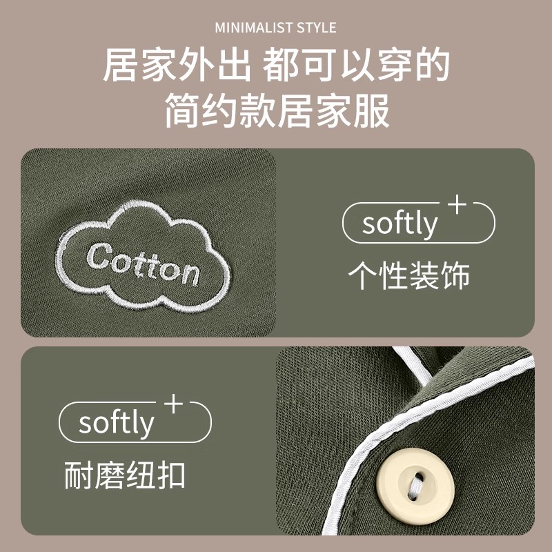全棉休闲家居服套装 带胸垫长袖 秋春2025新款 都市丽人纯棉睡衣女款