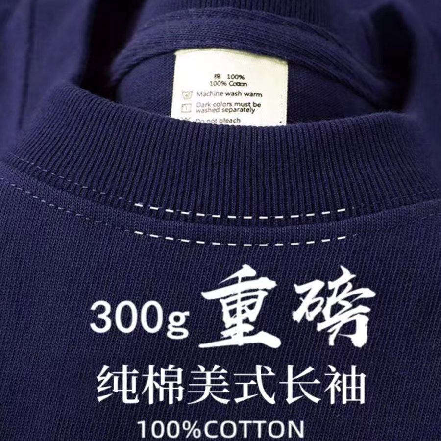 秋装 300G重磅美式 男女宽松卫衣圆领内搭打底衫 T恤秋冬季 纯棉长袖