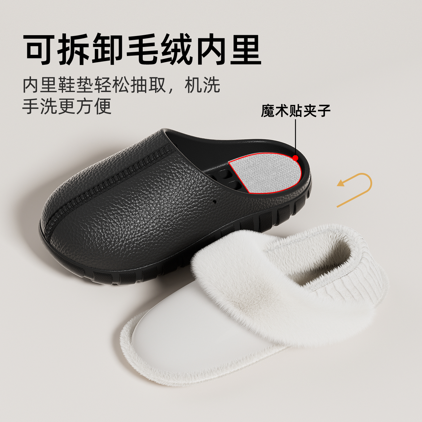 室内居家加绒保暖厚底防滑棉鞋 包跟棉拖鞋 2025新款 冬季 男外穿 女款
