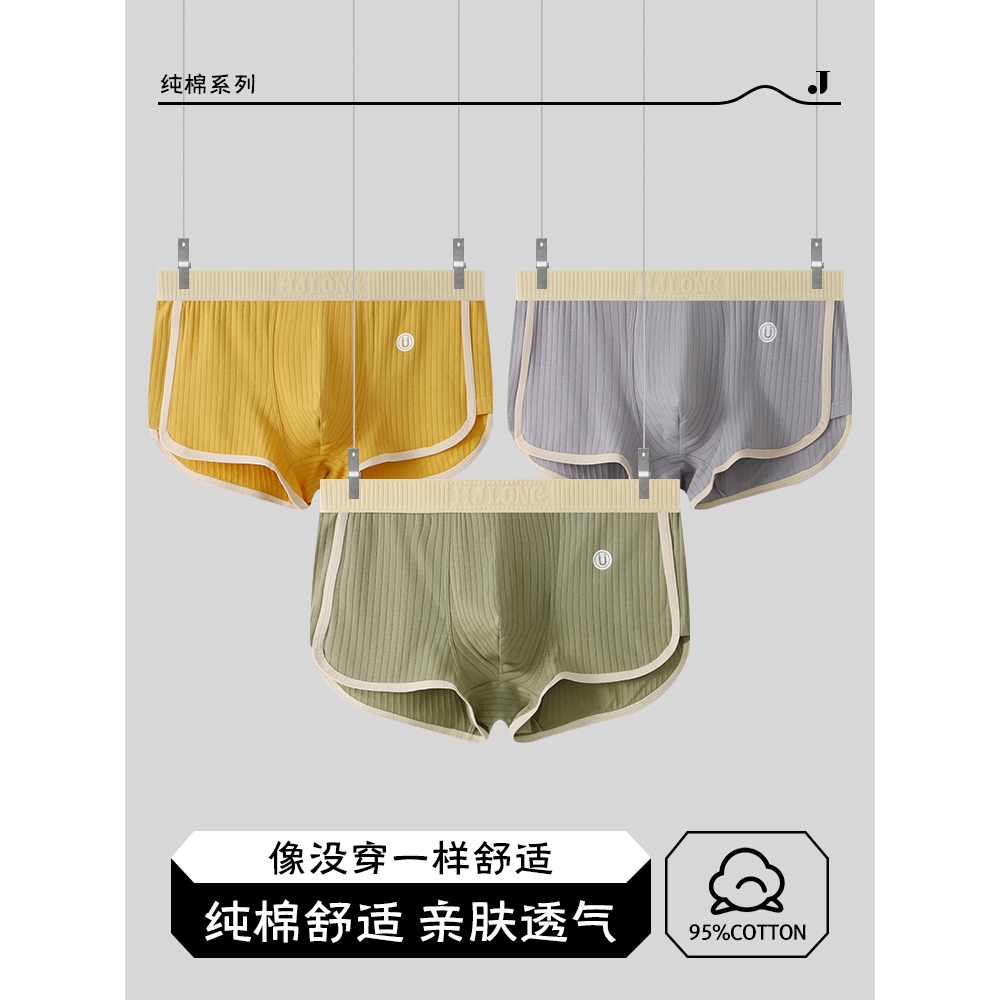 四角短裤 3件 纯棉透气裆新款 平角内裤 高档男生 蕉内银皮510S男士