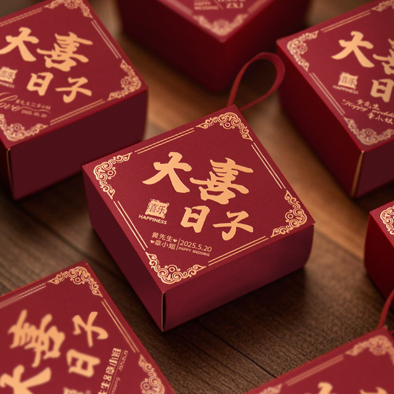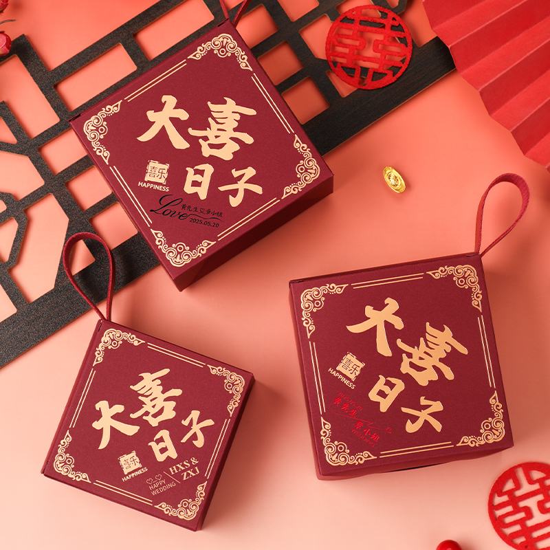 结婚喜糖盒子2025新款 婚礼高级感伴手礼盒糖果盒喜糖空盒定制 中式