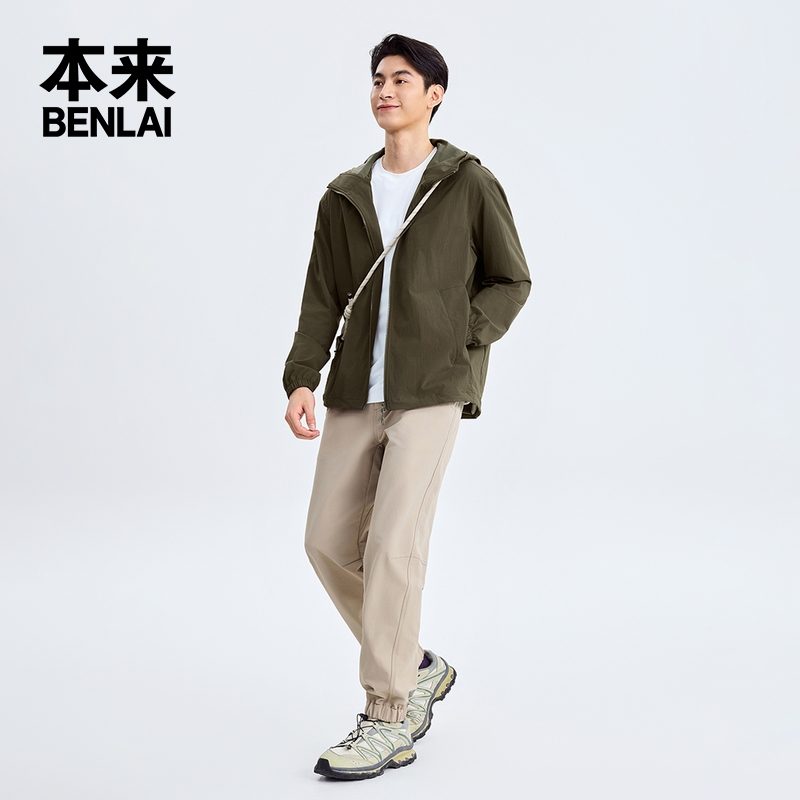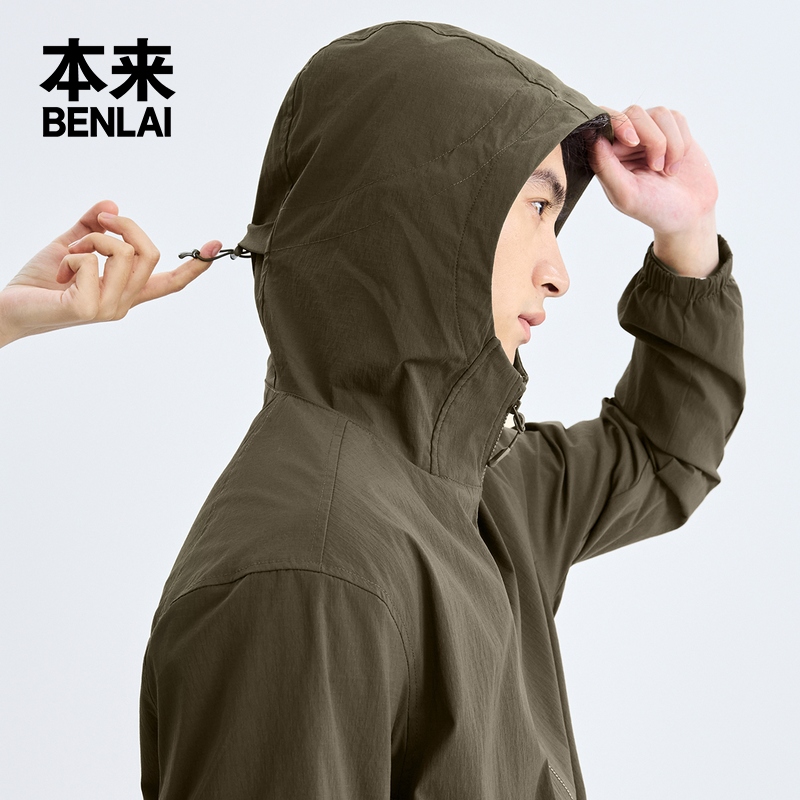 骆驼运动外套女秋季 风衣外套连帽户外软壳登山防水防风薄绒夹克男