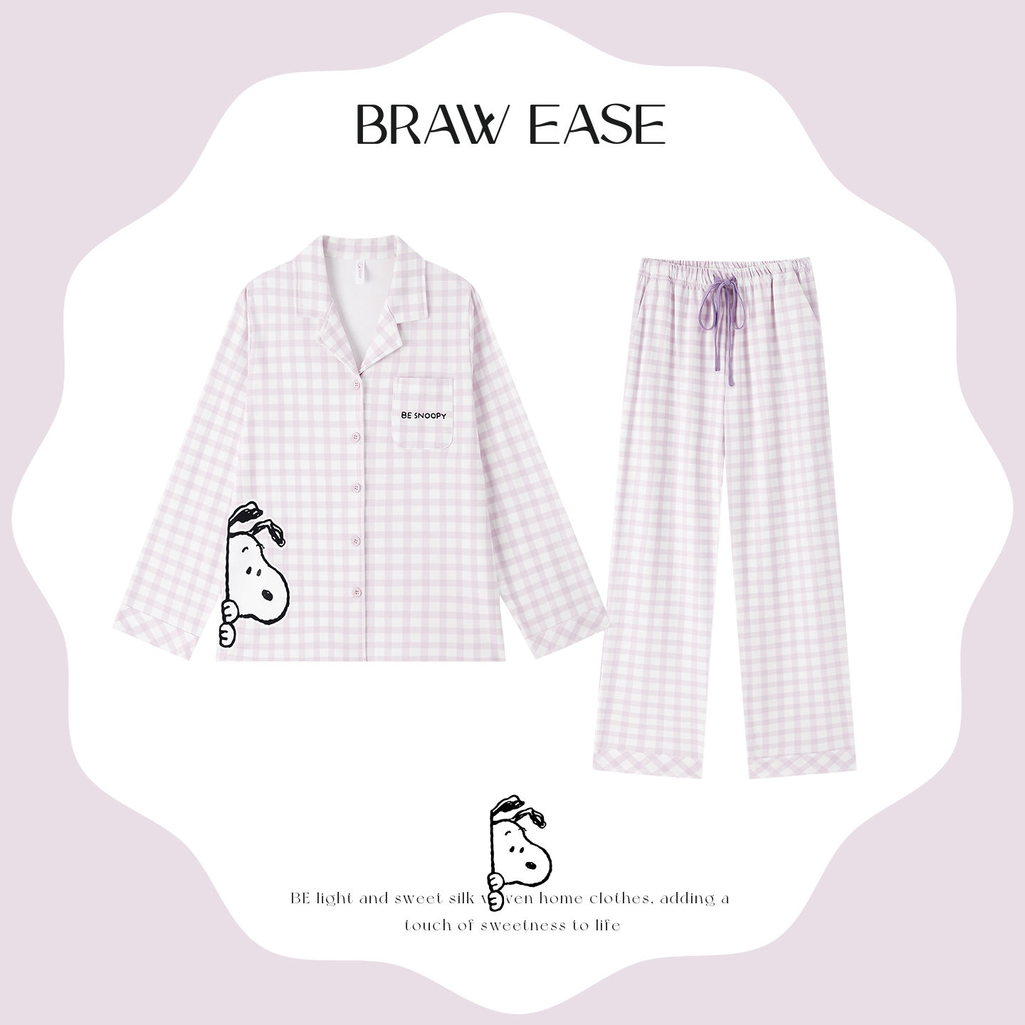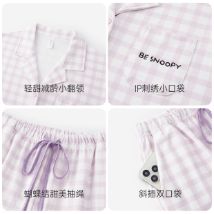 新款 套装 柔软棉长袖 长裤 家居服可外穿大码 贝妍史努比睡衣女春秋季