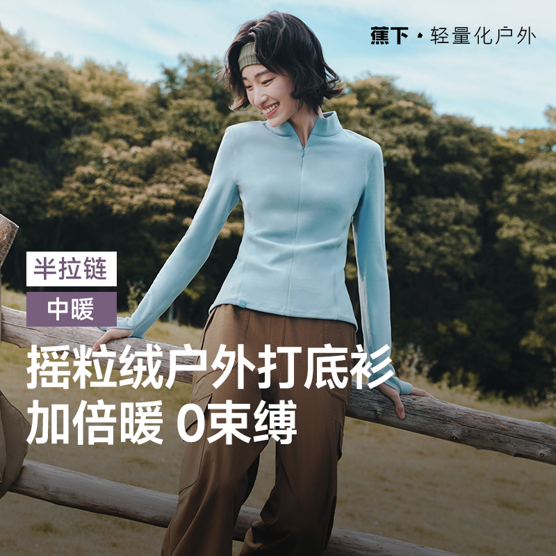 蕉下女士半拉链修身 内搭上衣保暖秋瑜伽服健身训练服 摇粒绒打底衫