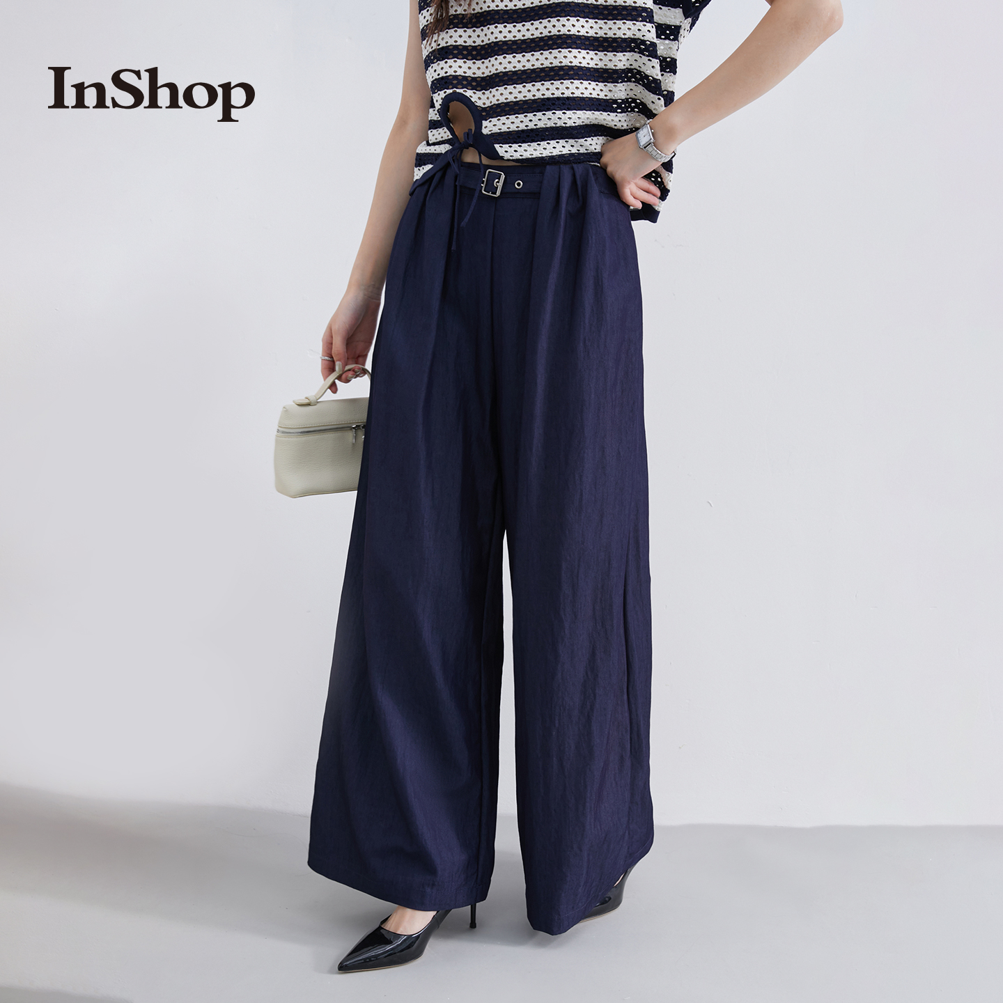 阔腿牛仔裤 INSHOP新款 女松紧带宽松显瘦通勤喇叭裤 商场同款