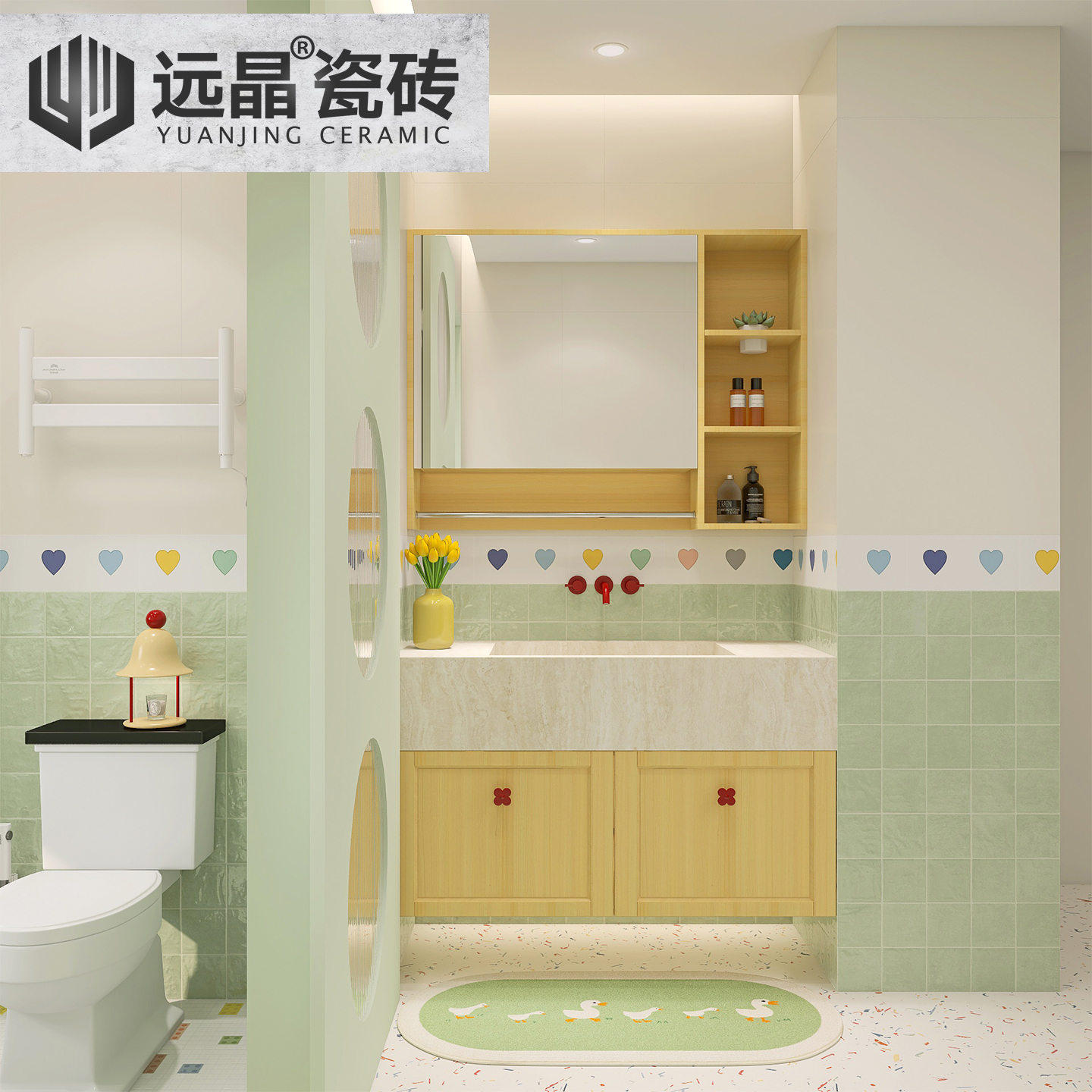 远晶奶油多巴胺彩色小爱心瓷砖厨卫浴墙砖阳台地砖防滑亮光格子砖