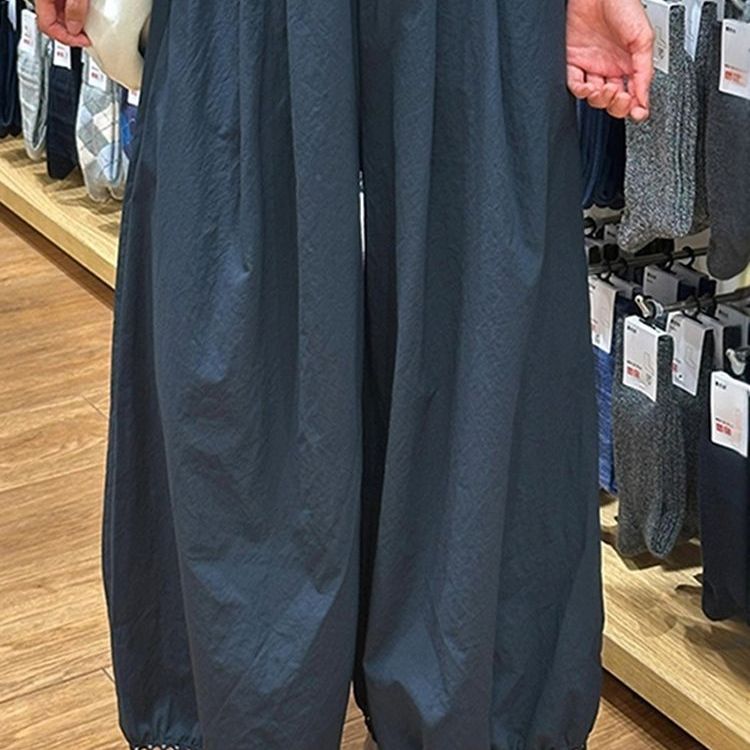 藏青色镂空阔腿灯笼裤 速干长裤 夏季 显瘦九分气球花苞裤 女新款 大码
