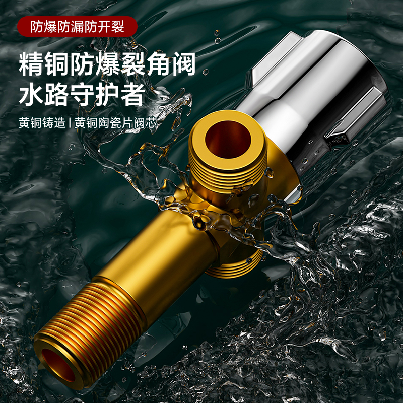加长款 三角阀全铜加长丝接头三通双出水阀马桶洗衣机一进二出纯铜