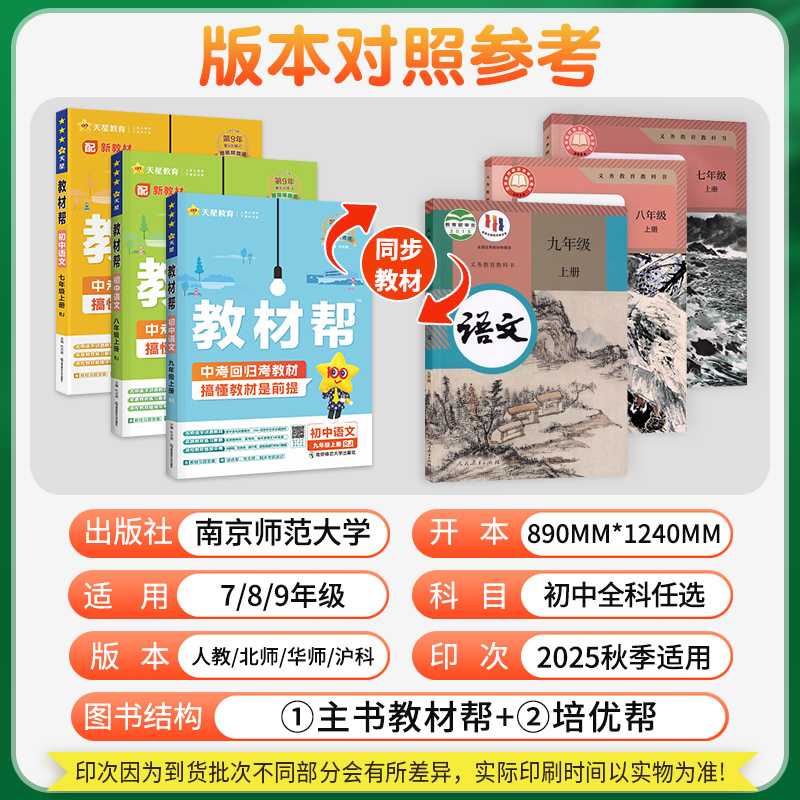 一三二新教材全解课本 北师大沪科沪粤初中初 2025秋版 初中教材帮七八年级上册九年级语文数学英语物理化学政治历史生物地理人教版