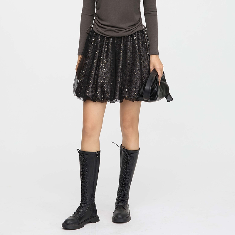 超好看独特漂亮半裙2025新款 黑色网纱裙短裙 春夏半身裙女A字款