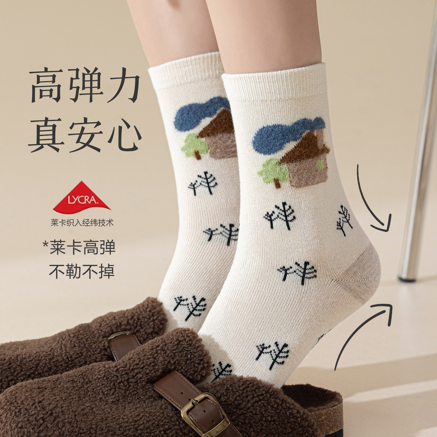 秋冬女袜2025新款 中筒袜女士袜子 粉色可爱少女卡通棉袜搭配小皮鞋