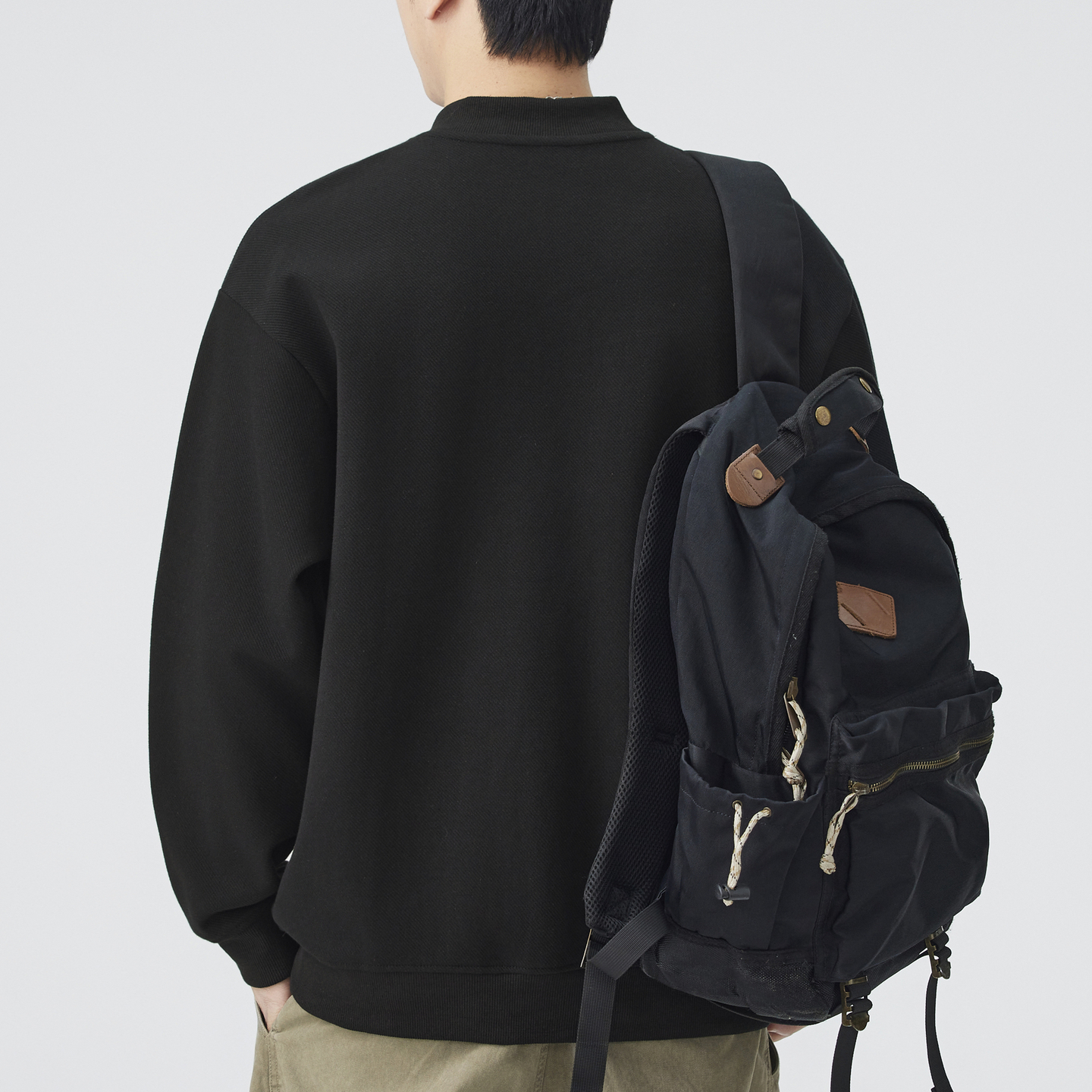 长袖 男士 打底衫 日系潮牌男装 内搭 v领上衣黑色套头卫衣男2025新款