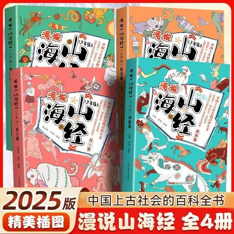 全套启蒙书籍中国上古社会 新版 课外阅读书目漫画版 神兽篇异人篇神话篇鱼鸟篇全套4册中小学生经典 百科全书 漫说山海经少年版