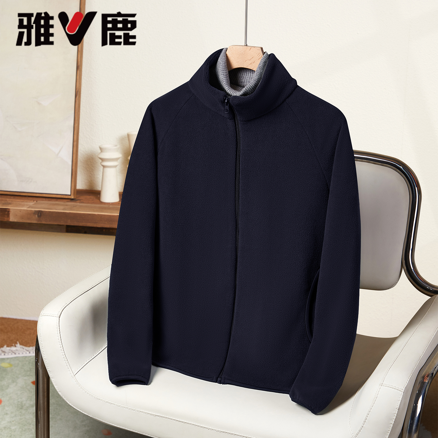 立领亲肤宽松休闲保暖夹克 摇粒绒外套2025秋冬新款 雅鹿短款 情侣装