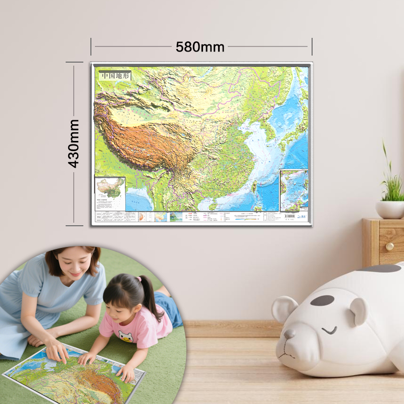 3d立体凹凸地形图 2025年中国和世界全地形地图 约58 43cm浮雕地图挂图 饰画 初高中学生用地理教学办公室家用墙贴装 北斗新品