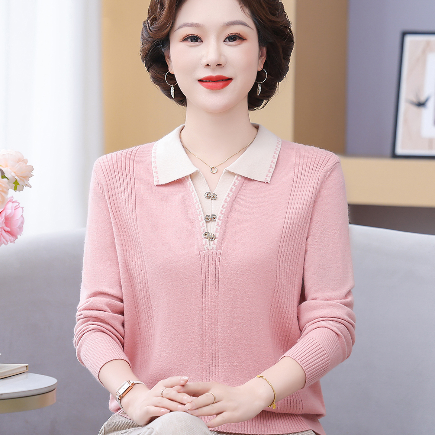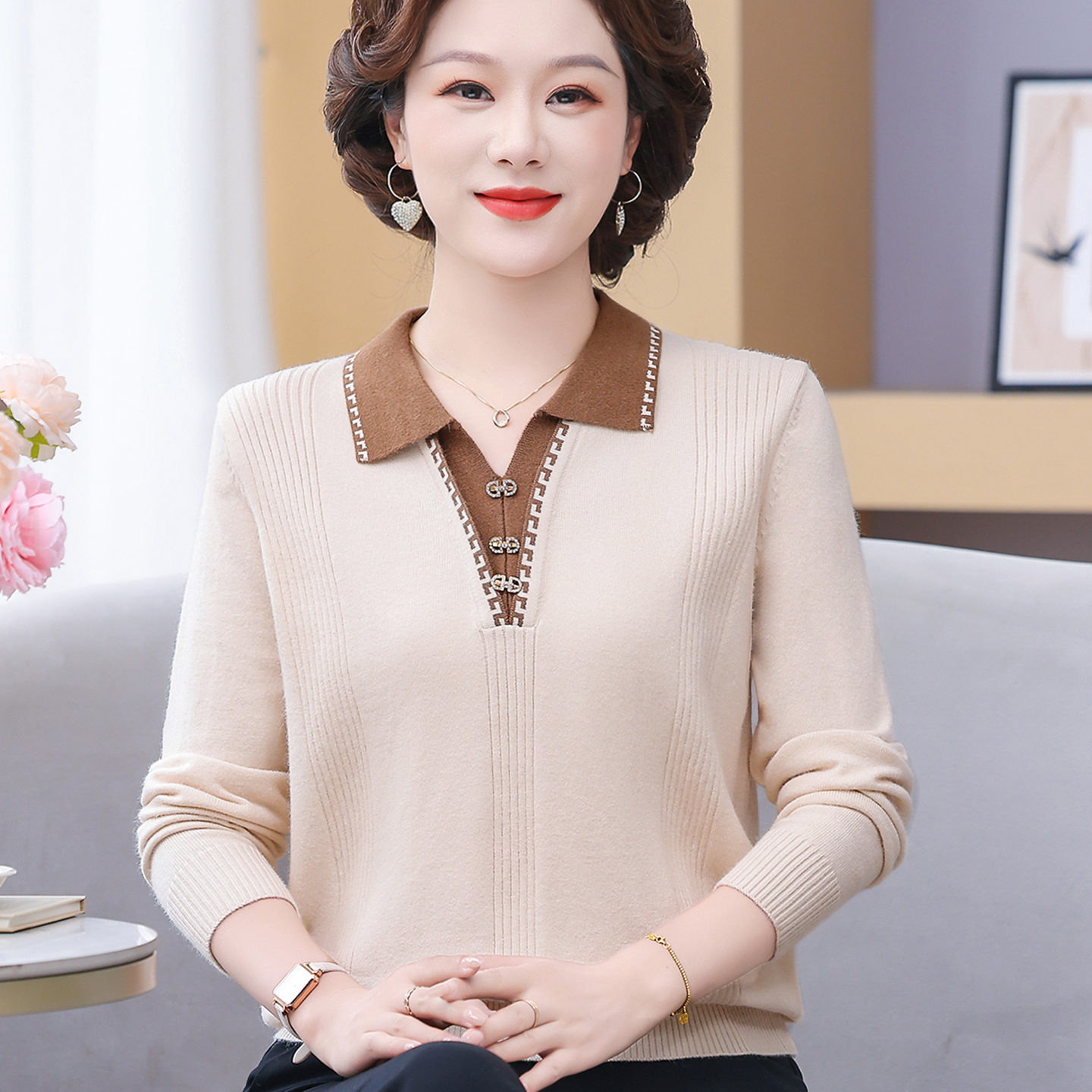 洋气套装 妈妈装 针织毛衣冬装 两件套翻领宽松上衣中老年女装 春秋季