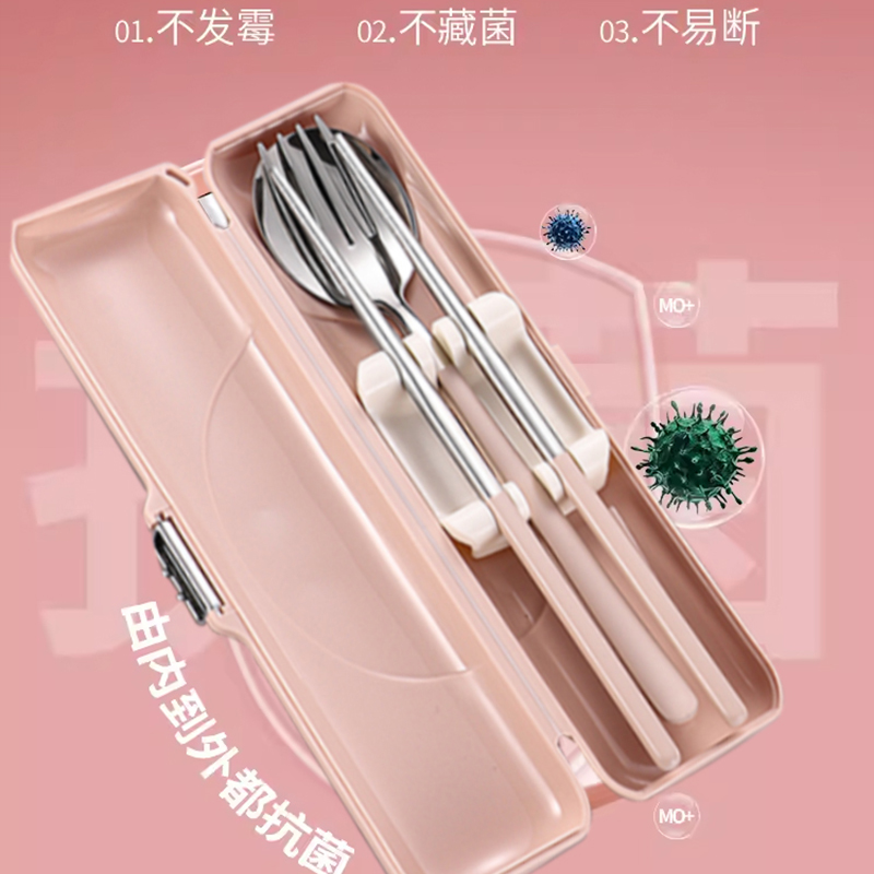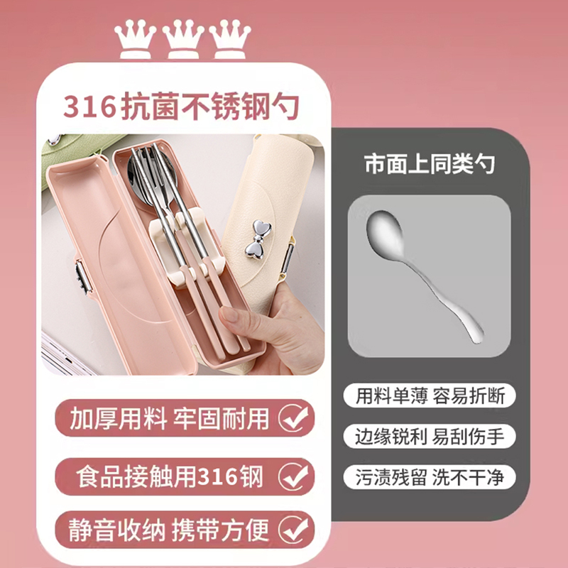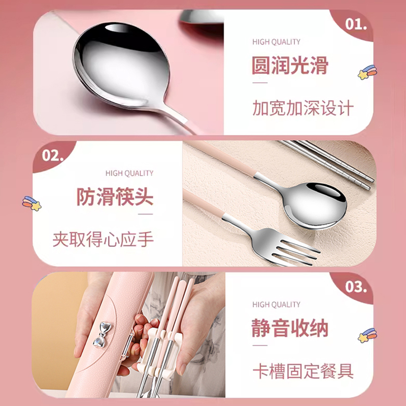 小学生筷子勺子套装 儿童专用316不锈钢便携餐具三件套带收纳盒女