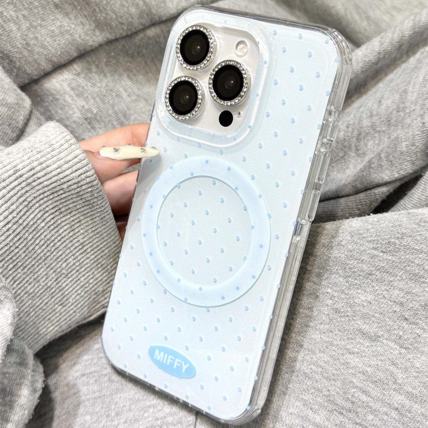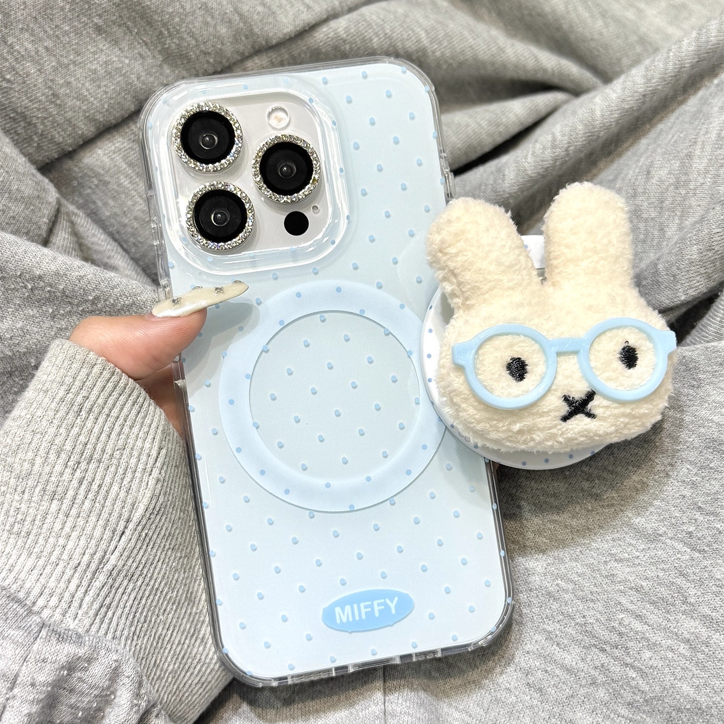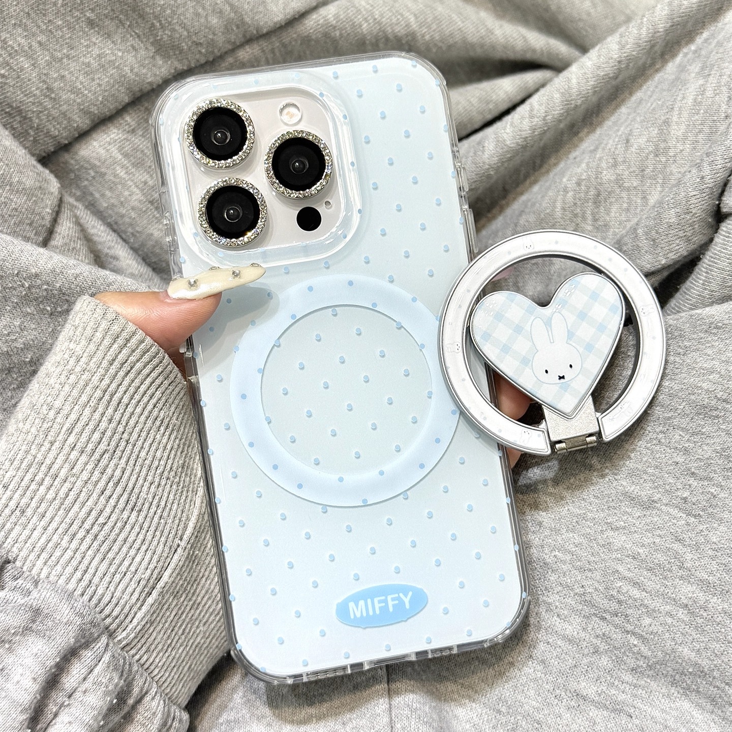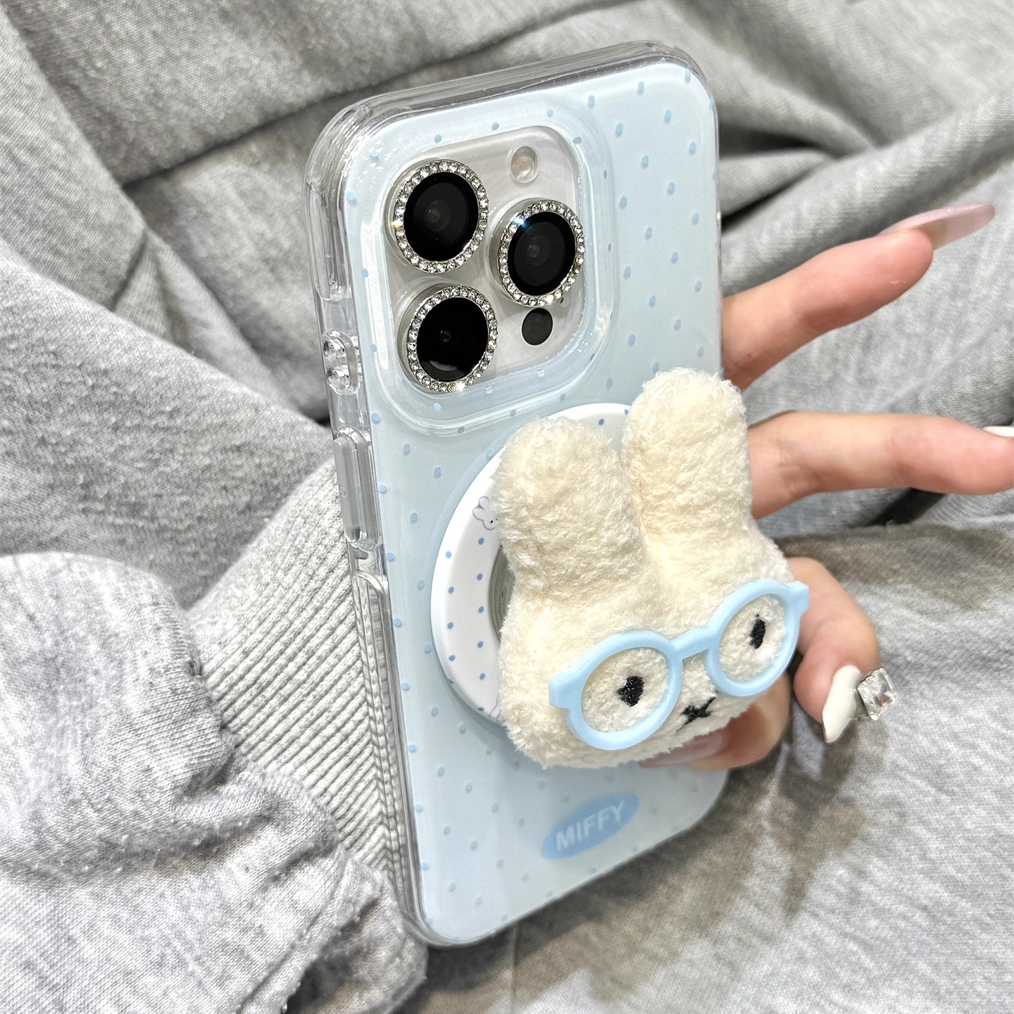 baby蓝波点毛绒米菲兔爱心折叠磁吸支架适用于iphone17promax苹果14手机壳15新款 16pro女17硅胶13pm防摔软壳