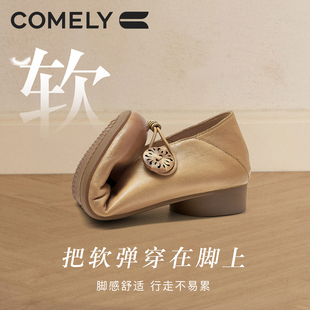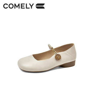 女 羊皮芭蕾玛丽珍单鞋 董洁董璇小酒窝同款 真美诗摩卡慕斯25秋新款