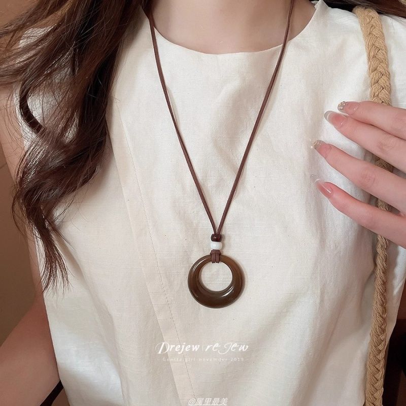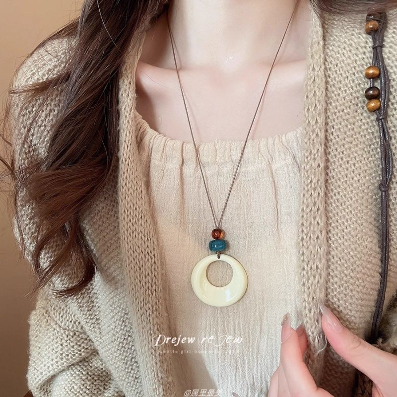 波西米亚项链毛衣链配饰长款 禅意双层羽毛女民族风古铜叠戴 新中式