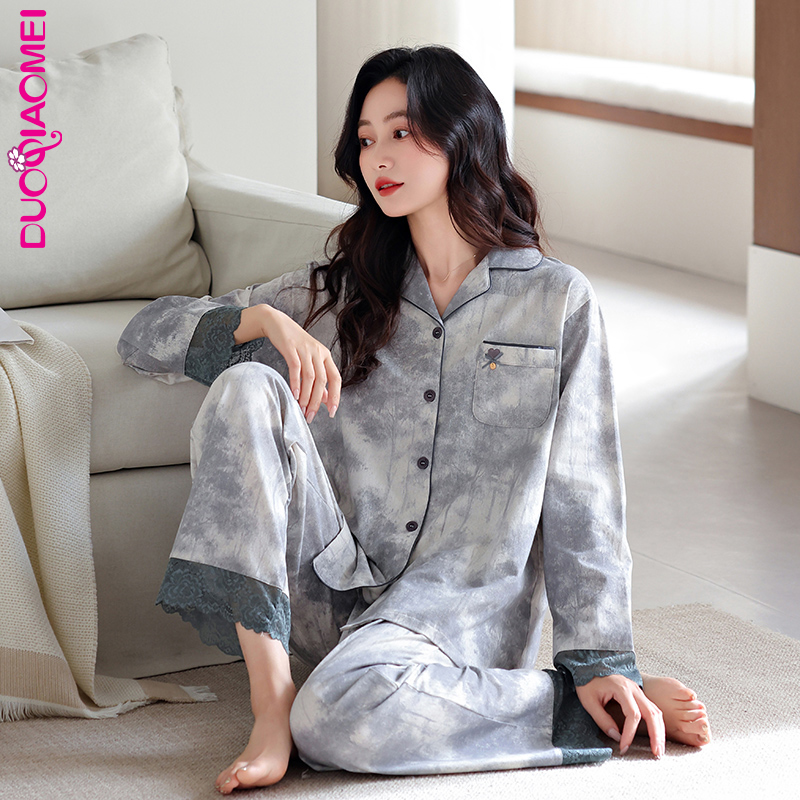 甜美家居服女套装 都市丽人带胸垫睡衣女款 2025新款 纯棉长袖 春秋季
