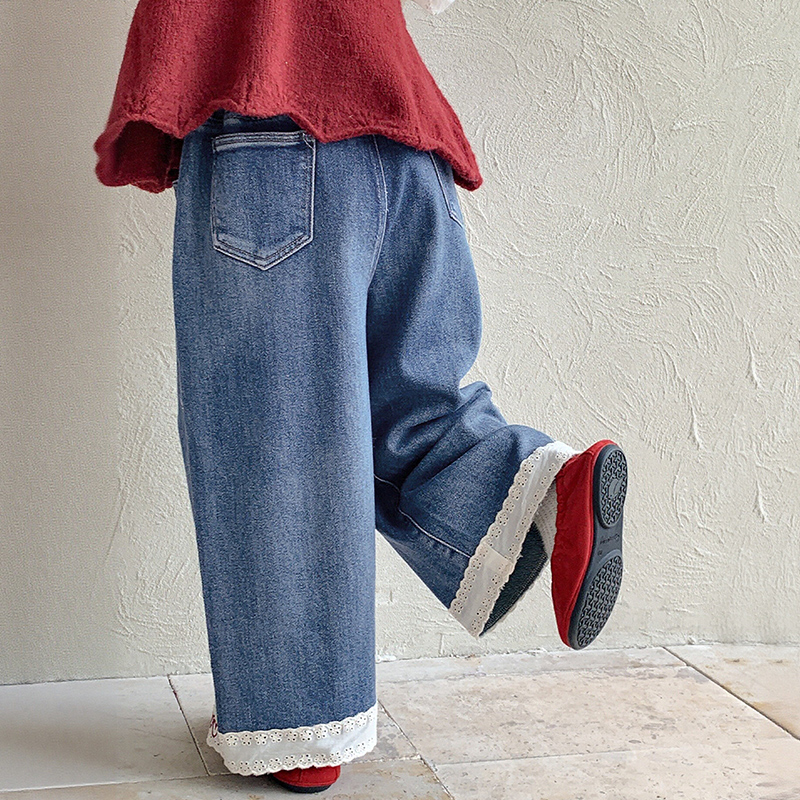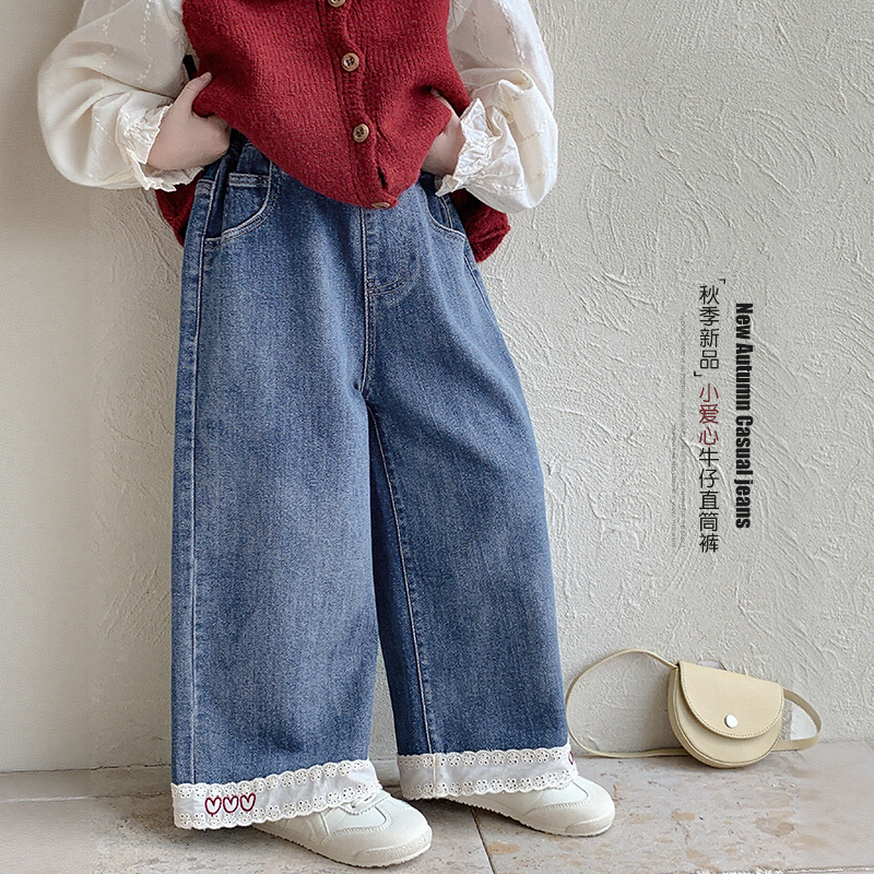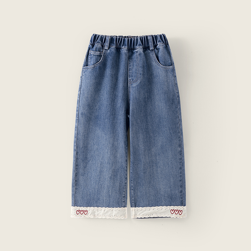 新品 春夏裤 优选 毛边牛仔长裤 子儿童阔腿裤 马克华菲女童喇叭裤