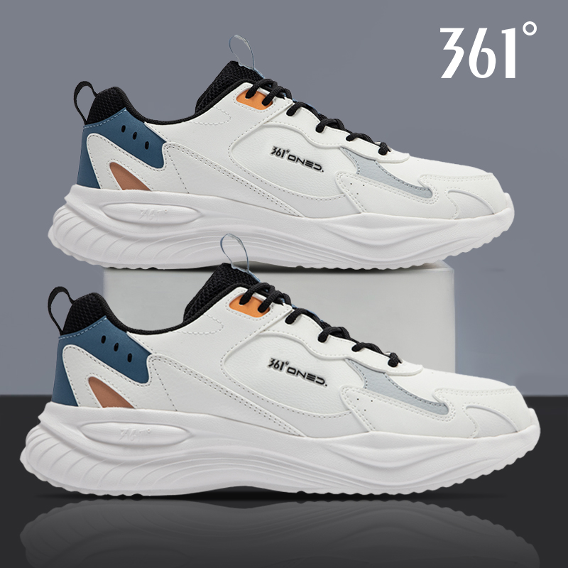 子男鞋 361运动鞋 百搭休闲鞋 皮面防水轻便软底小白鞋 男2025秋季