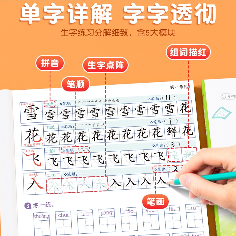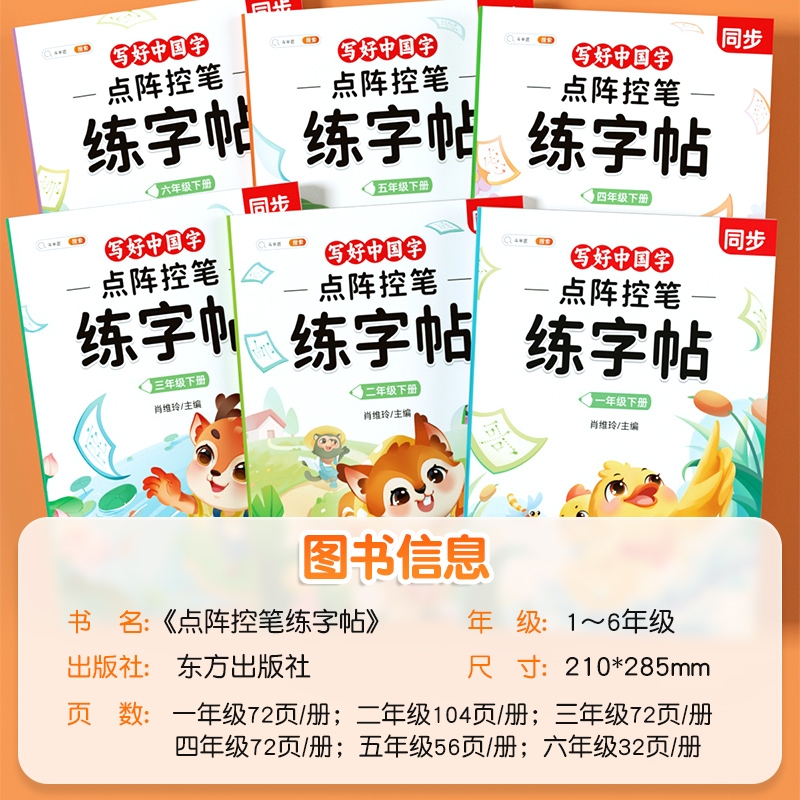 点阵控笔训练一年级二年级三年级四五六年级上册下册练字贴小学语文语文同步人教版 字帖小学生专用数字拼音笔画每日一练专项练习册