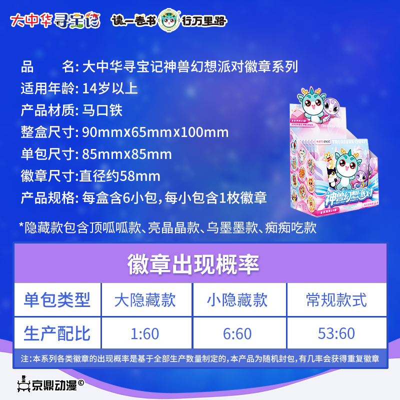 大中华寻宝记徽章 大小隐藏吧唧周边正版 神兽幻想派对系列盲盒周边端盒6枚二十一世纪出版 14款 现货速发 社文创新华书店正品