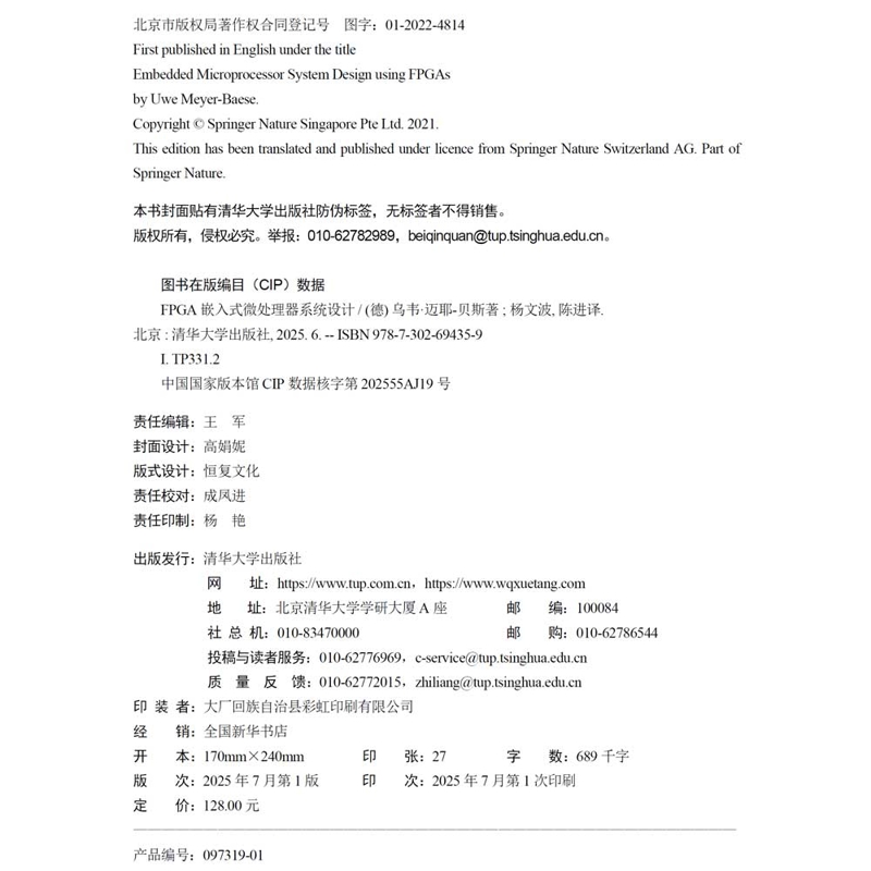 新 社 乌韦·迈耶 Meyer Baese Uwe 德 贝斯 清华大学出版 FPGA嵌入式 著程序设计 微处理器系统设计