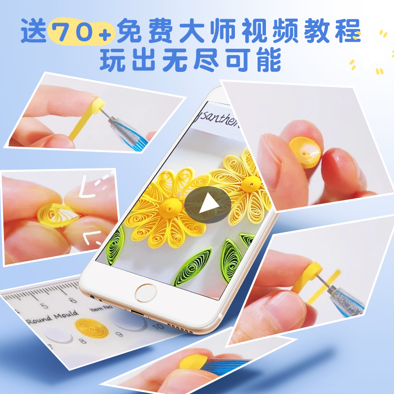 衍纸材料包套装 初学者衍纸画手工diy工具纸条胶水学生纸艺电动笔镊子儿童彩色线稿图收纳盒梳卷纸器安全立体