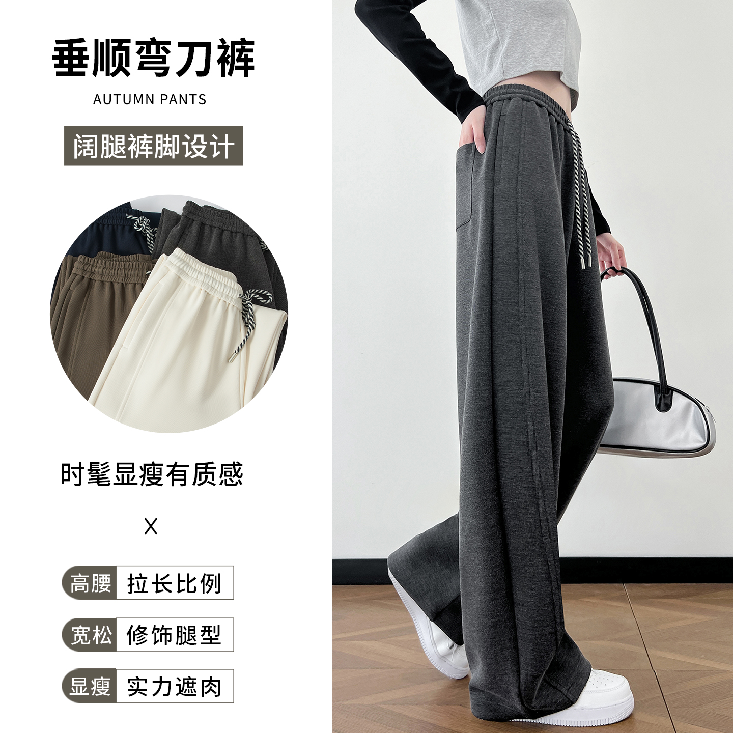 高级宽松bf慵懒垂感直筒加绒休闲阔腿裤 2025新款 子女春秋季 糯米裤