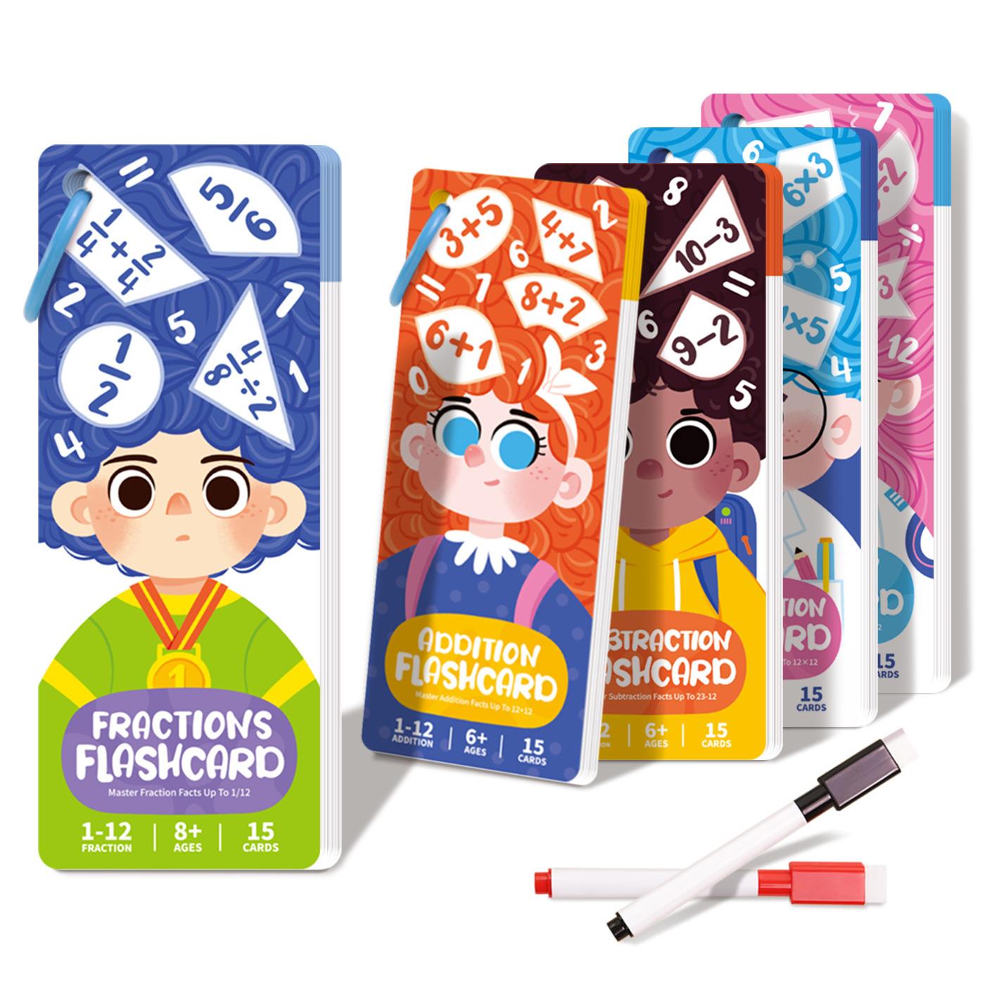 儿童分数学习闪卡教具小学生加减法乘法口算记忆卡片便携可擦写卡