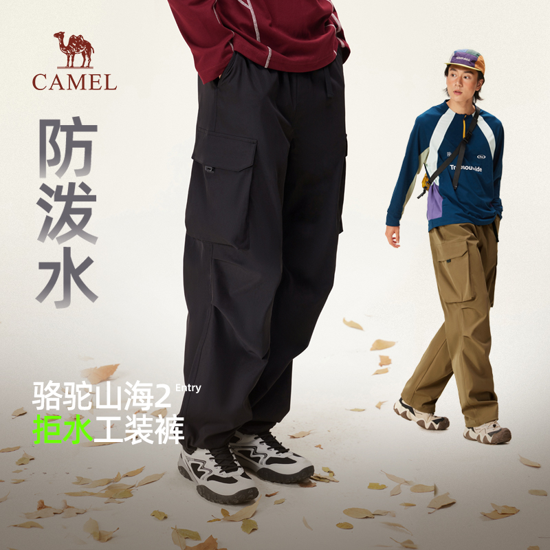 防泼水 休闲长裤 骆驼运动工装 女秋季 户外宽松直筒徒步登山裤 裤