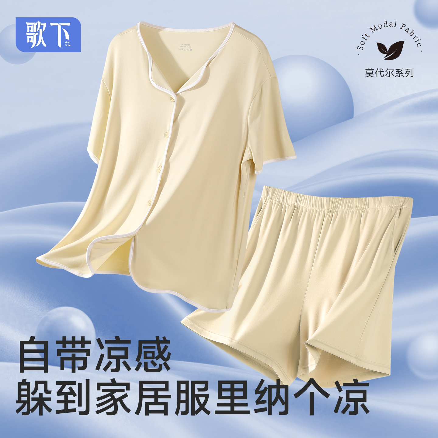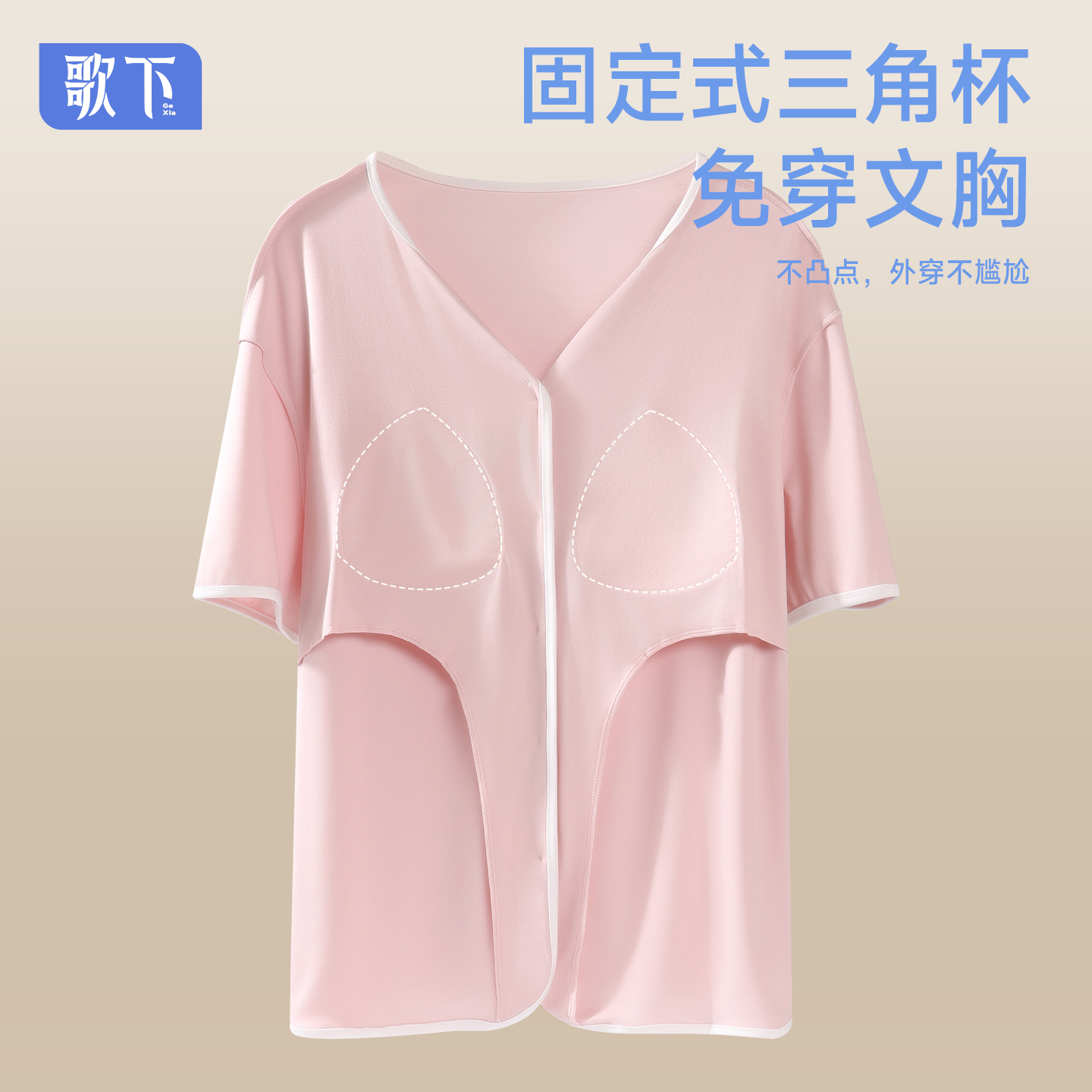超软莫代尔短袖 睡衣夏女带胸垫薄冰丝凉感高级感贵妇风家居服套装