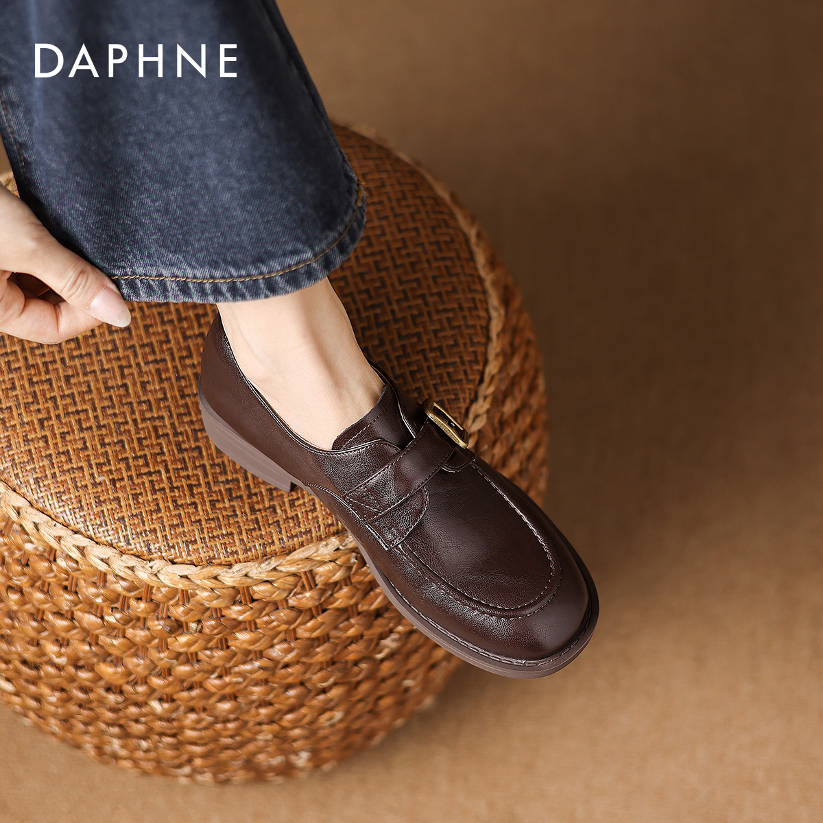 女2025新款 英伦风皮鞋 秋季 女款 老钱女士深口单鞋 达芙妮棕色乐福鞋