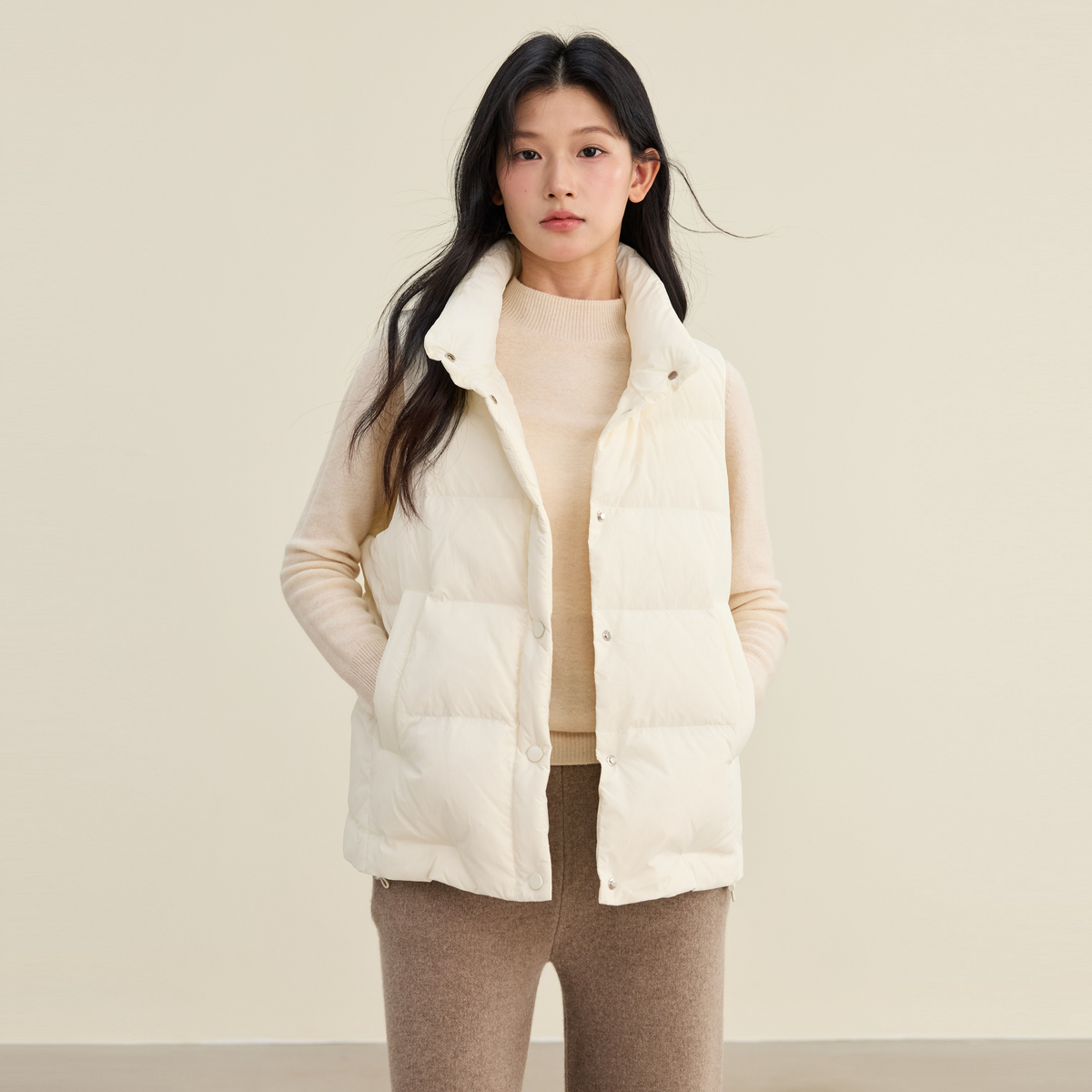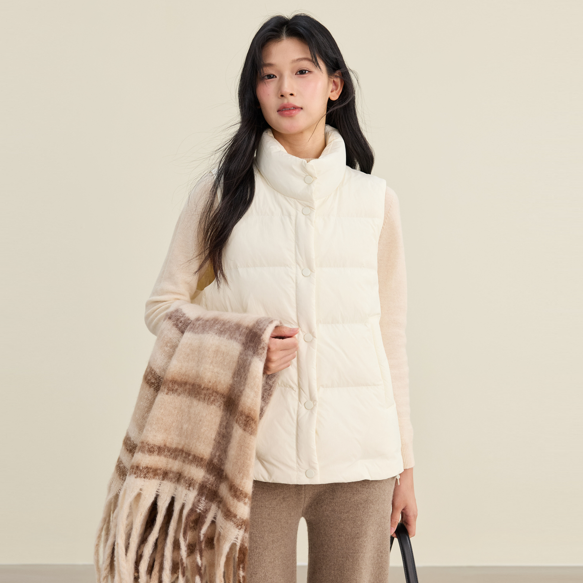 通勤简约百搭保暖外套 立领韩版 雪中飞2025冬新款 羽绒马甲女短款
