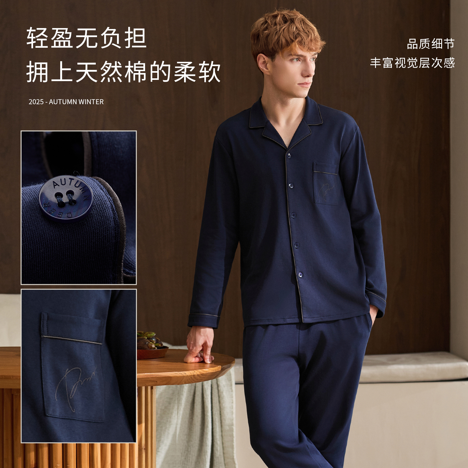 2024新款 可外穿休闲家居服套装 100%纯棉长袖 恒源祥睡衣男春秋冬季