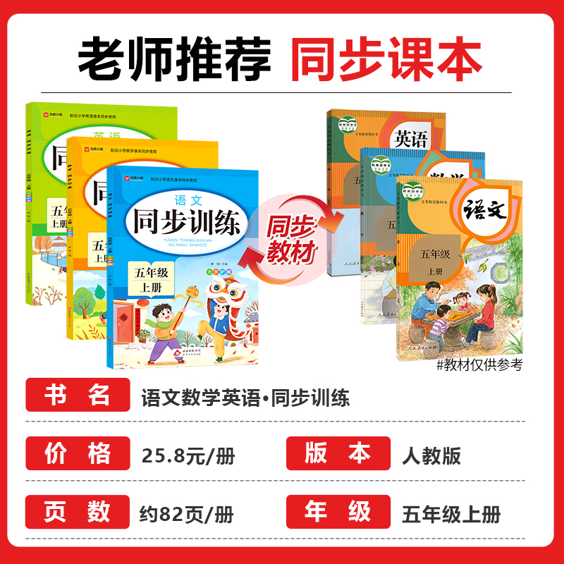 2025新版 一课一练教材书小学同步练习册每日一练RJ 五年级上册同步练习小学生语文数学英语同步训练全套人教版