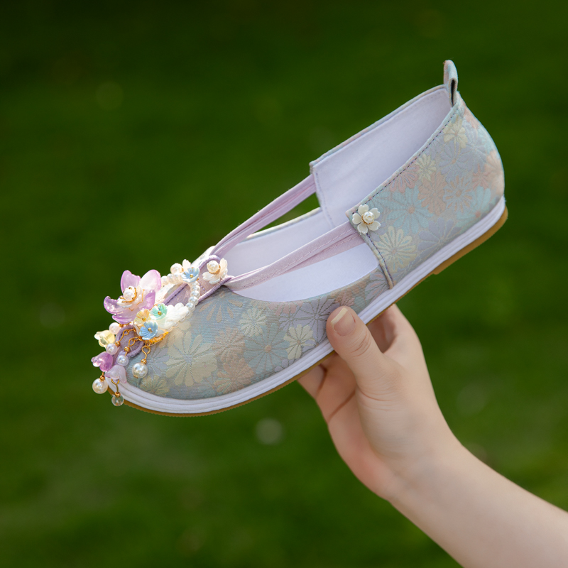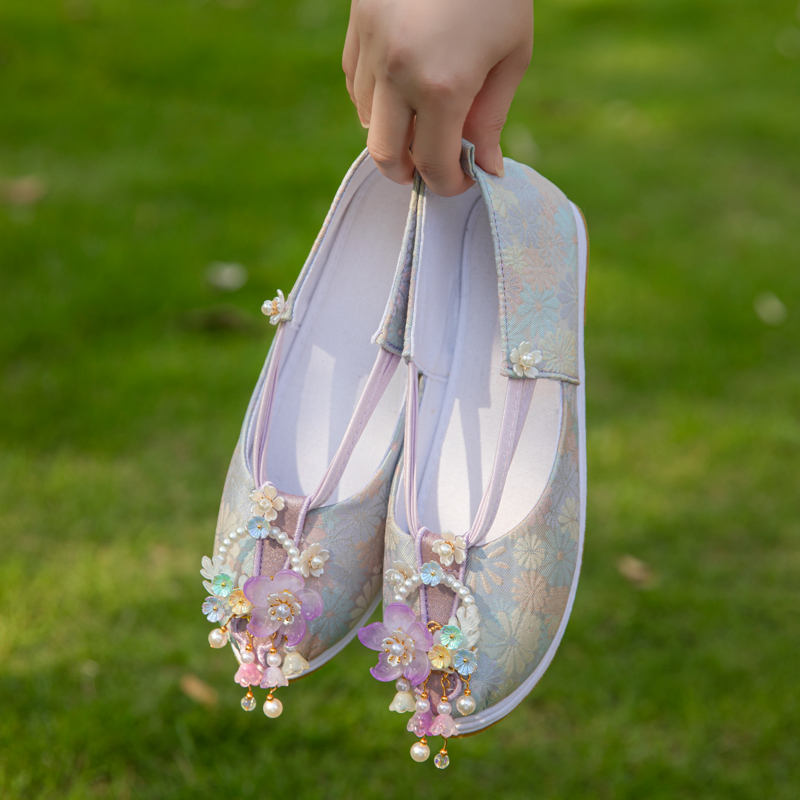 配马面国风绣花鞋 原创手工珠花千层底布鞋 女 唐制复原如意鞋 汉服鞋