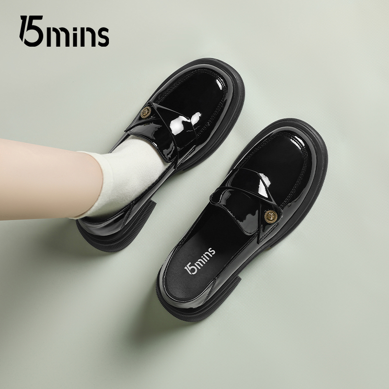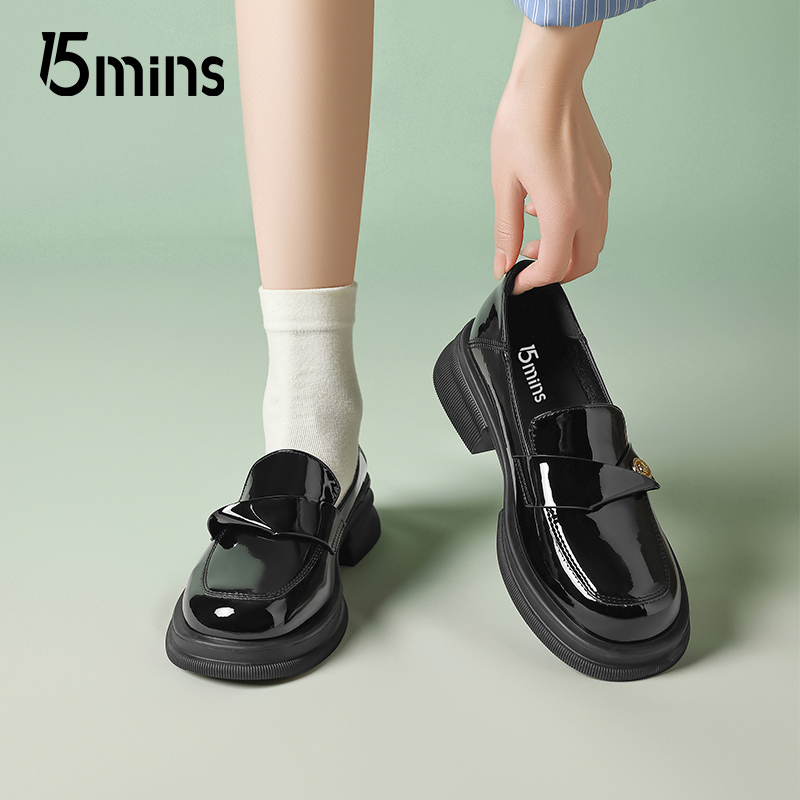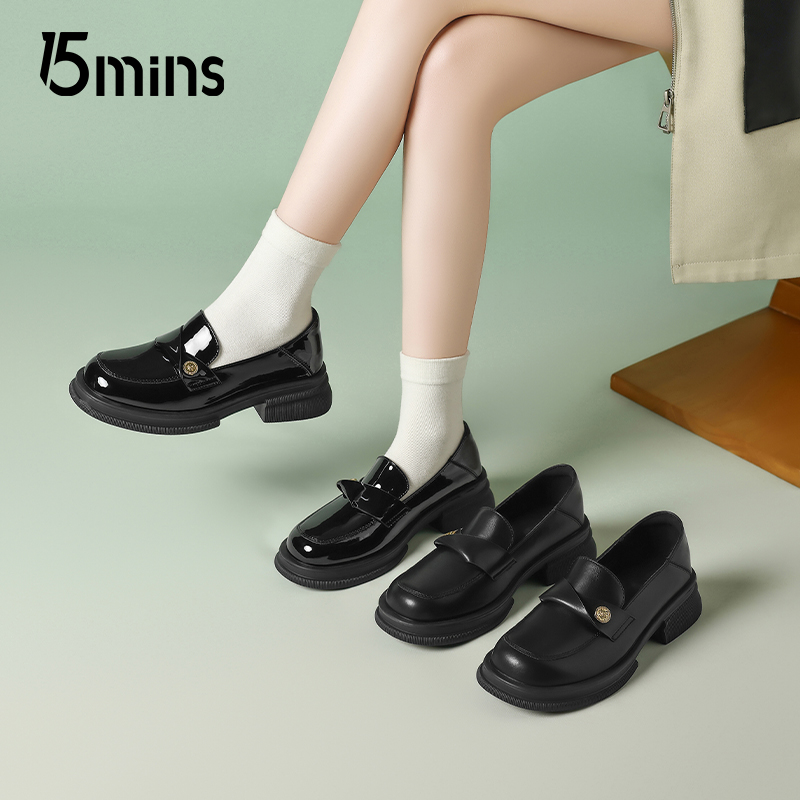 配裙子平底jk乐福鞋 15mins黑色小皮鞋 通勤厚底夏季 2025新款 女单鞋