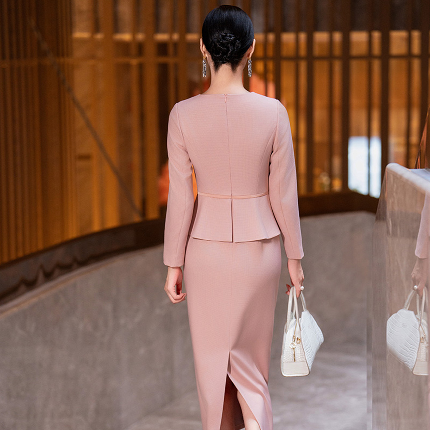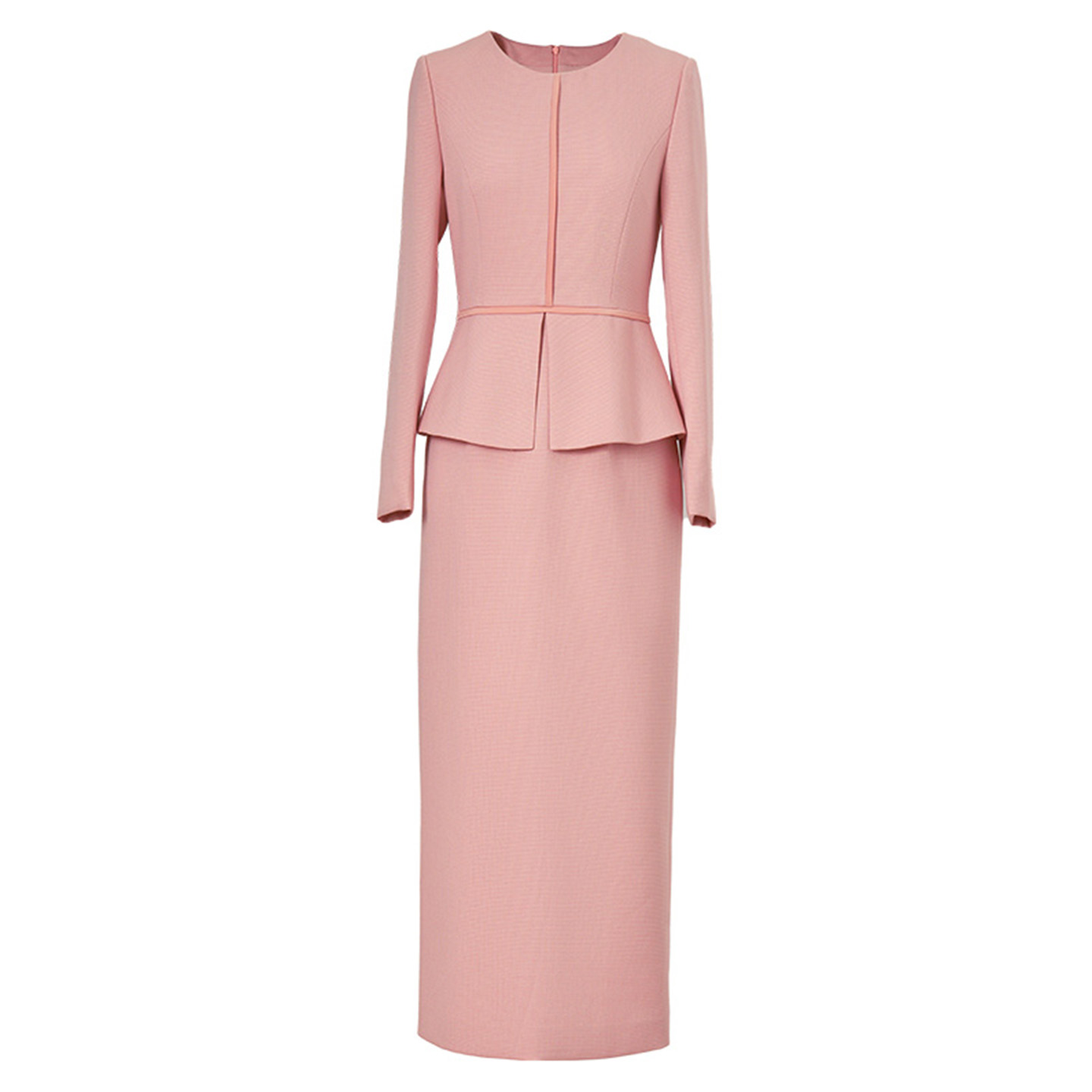 收腰假两件直筒裙子 气质减龄修身 粉色小香风连衣裙女2025秋季 新款
