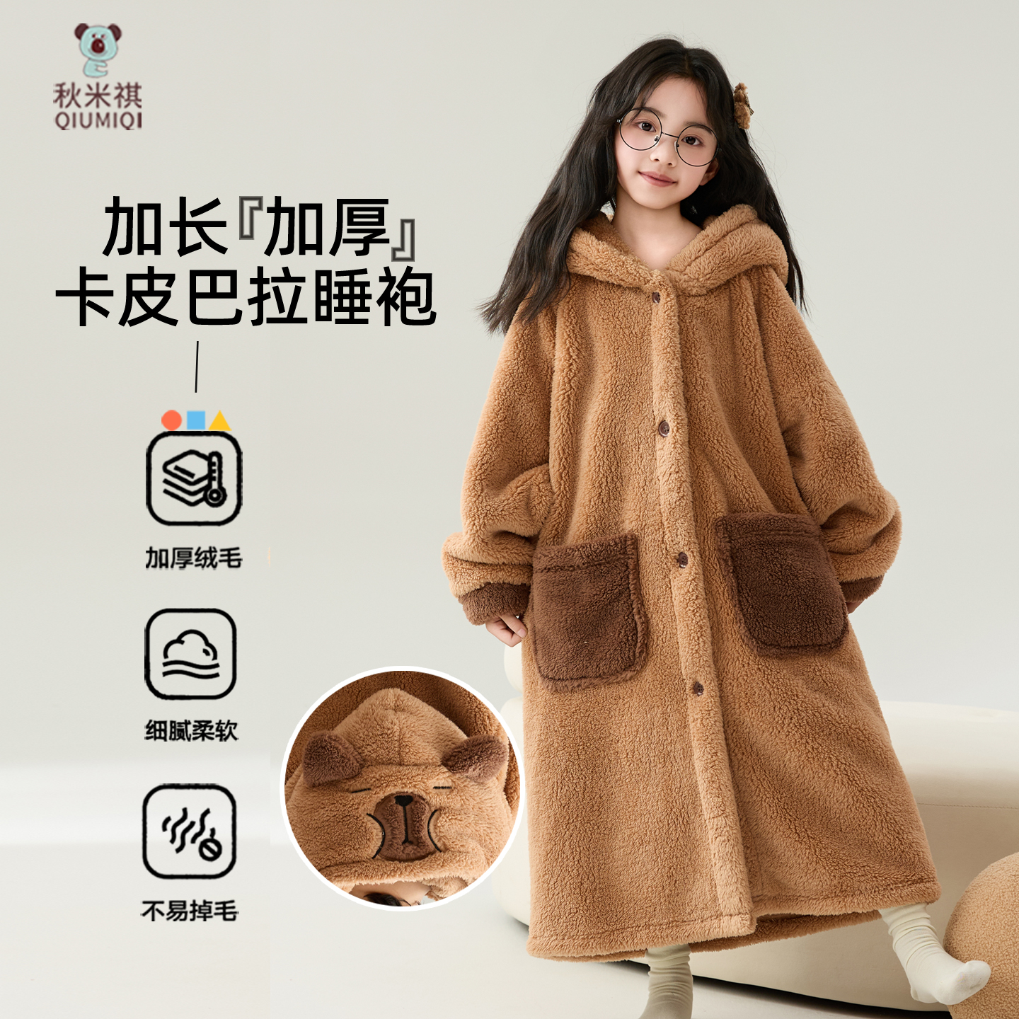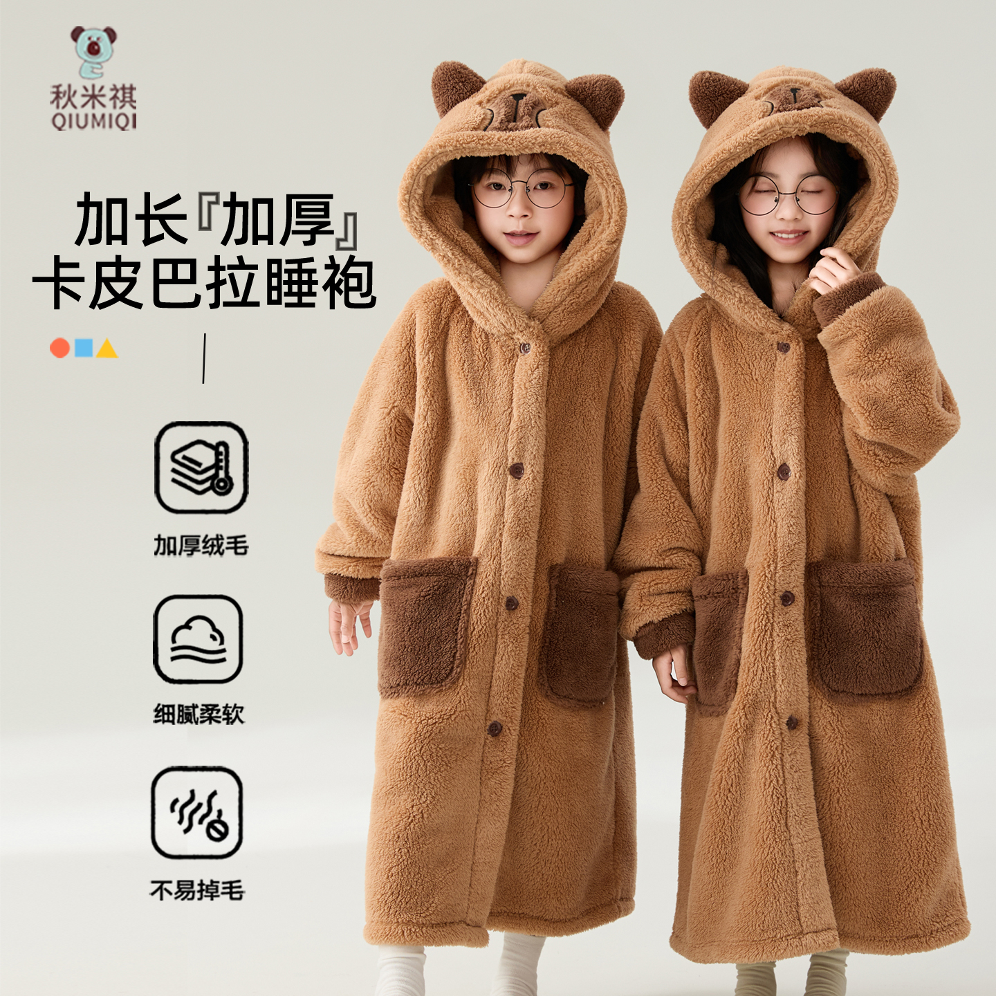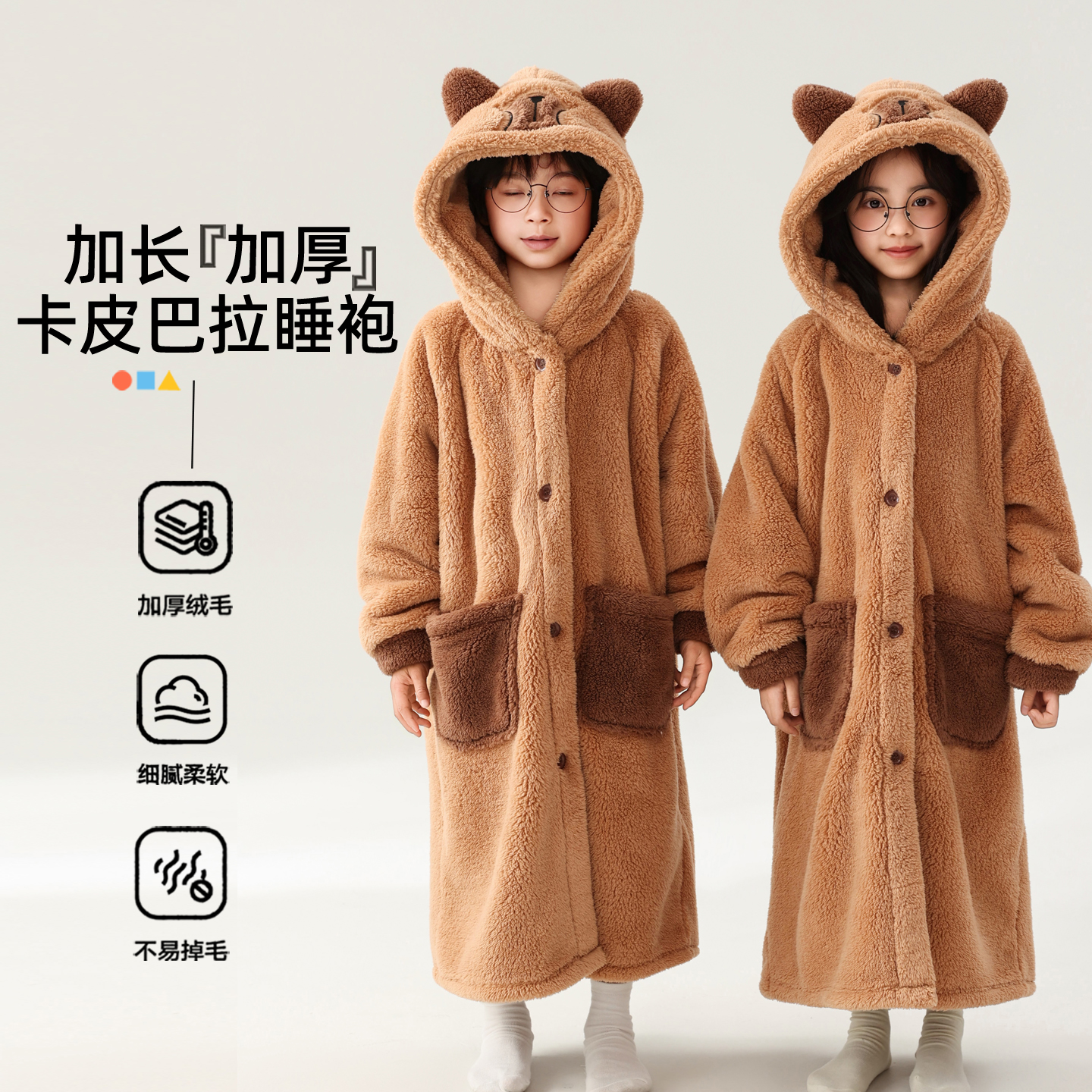 秋冬儿童睡袍加厚长款 珊瑚绒男童睡衣女童浴袍宝宝卡皮巴拉家居服