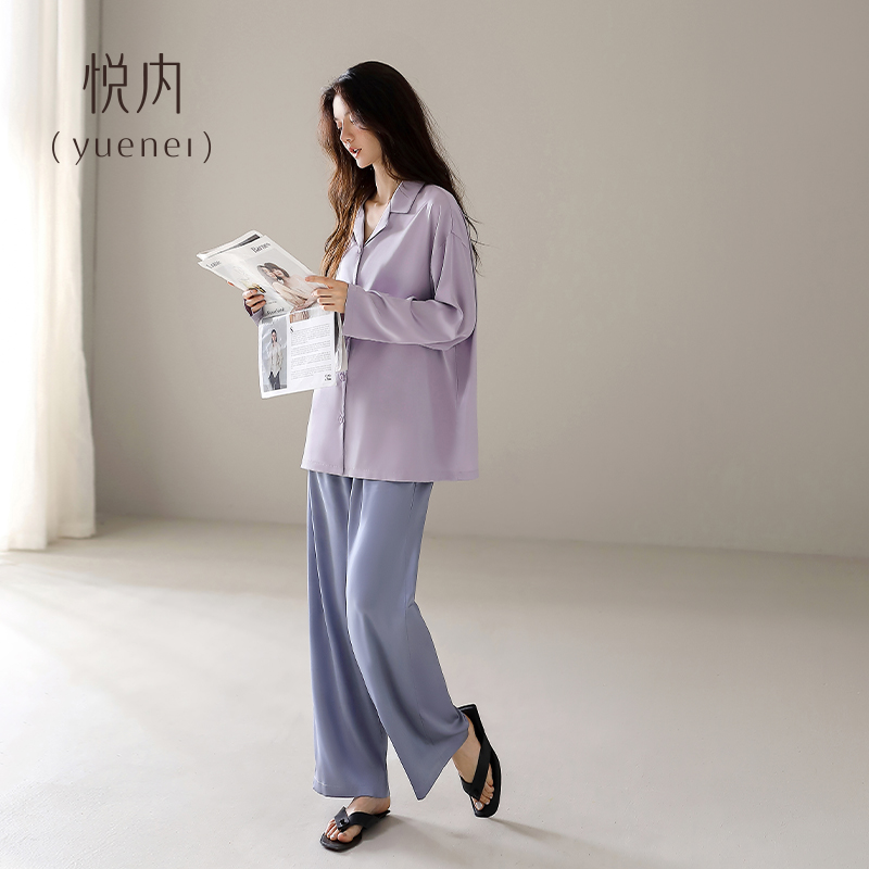 休闲紫色薄款 家居服丝绸时尚 可外穿 冰丝绸缎长袖 悦内睡衣女春秋款