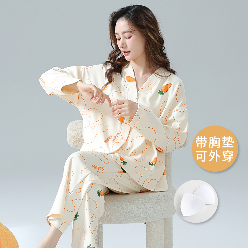 带胸垫大码 长袖 可外穿家居服居家 开衫 秋冬甜美睡衣女2025年新款