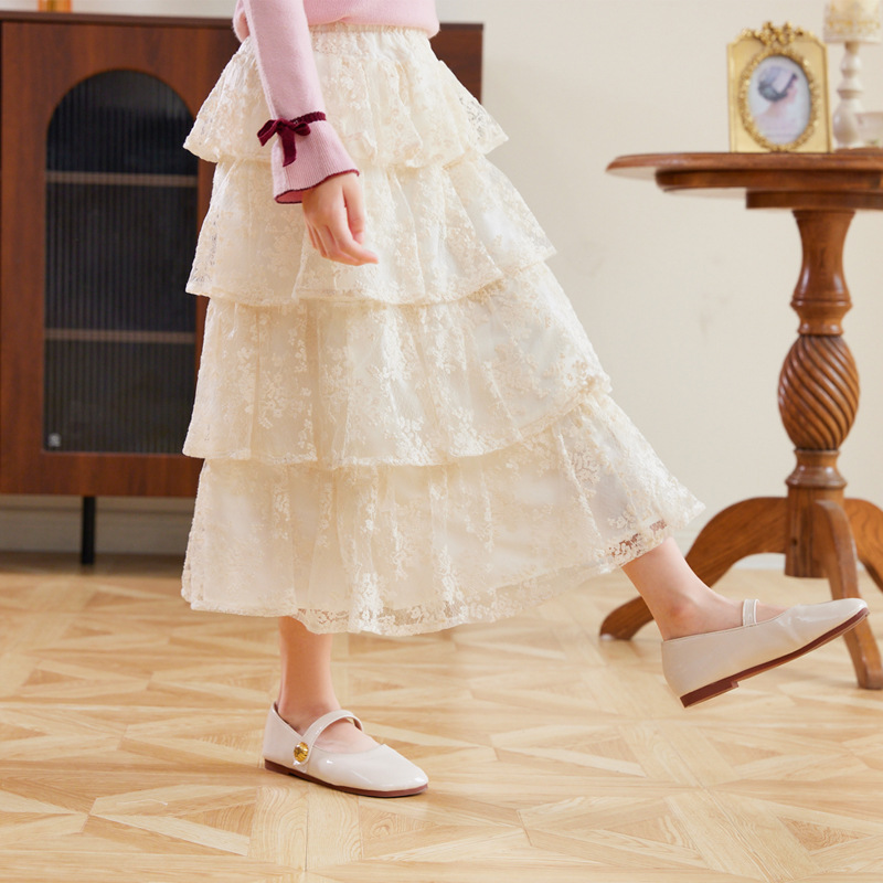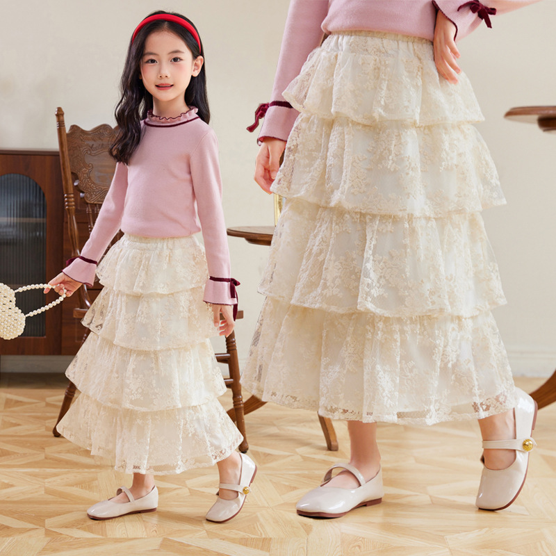 女童蛋糕裙春秋中长款 花边短裙儿童半身裙宝宝蓬蓬公主裙洋气大童